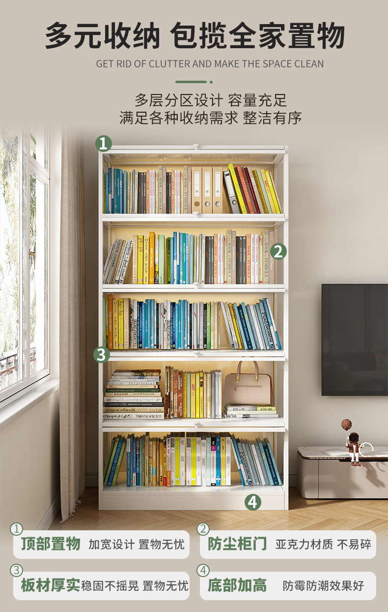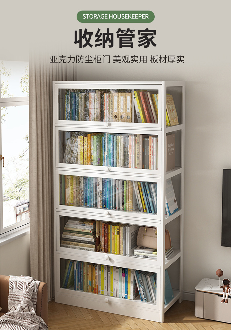 책꽂이 바닥 보관 랙 어린이 가정용 저장 방진 간단한 책장 문 벽 거실 보관 디스플레이 캐비닛
