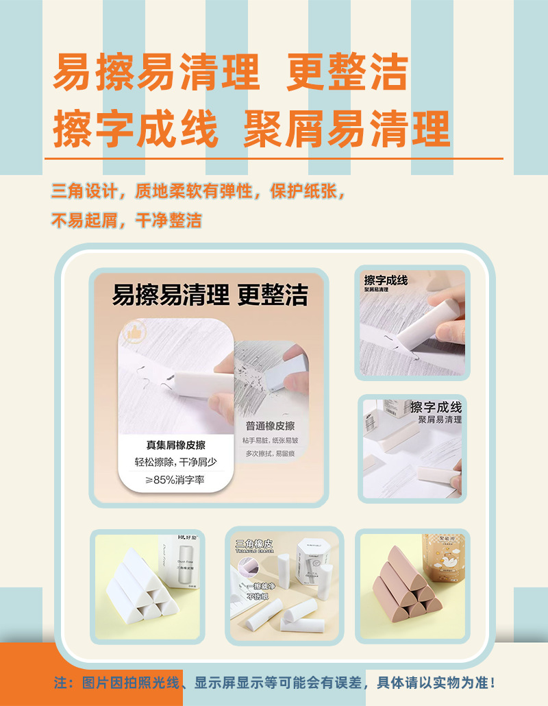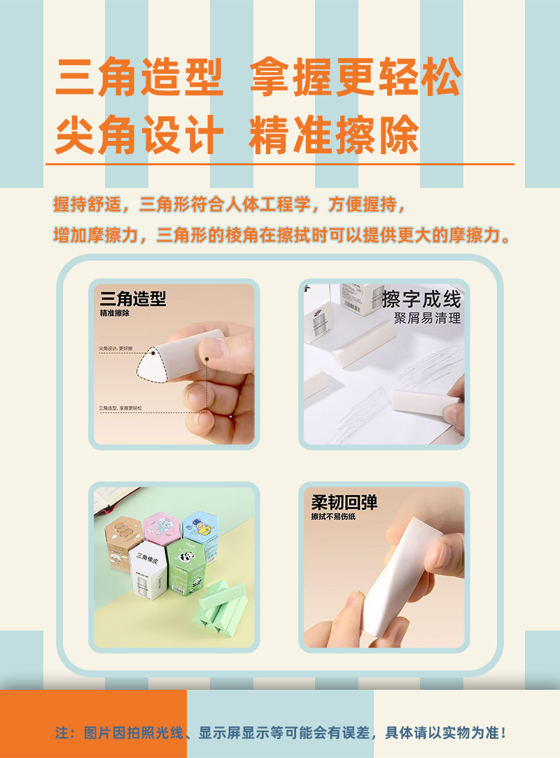 삼각형 지우개 2B 덜 스크랩 깨끗한 마크 없음 단색 높은 색상 가치 학생 시험 브러시 미술 특수 지우개