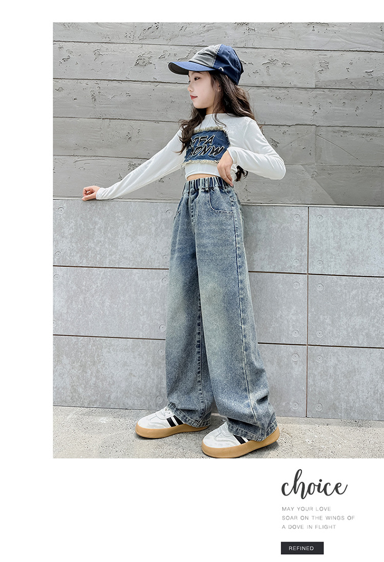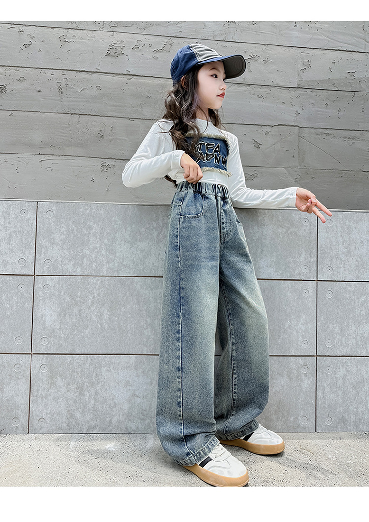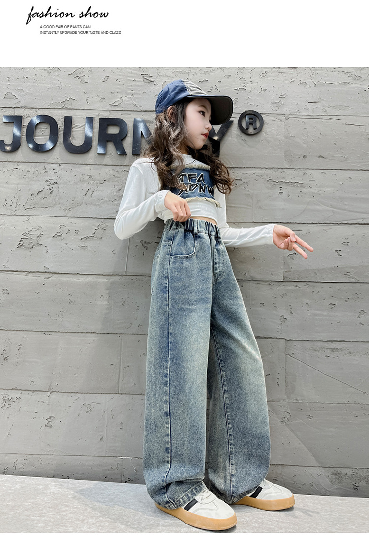 소녀 바지 어린이 봄과 가을 새로운 여자 어린이 의류 소녀 짠 바지 캐주얼 데님스토어 가기