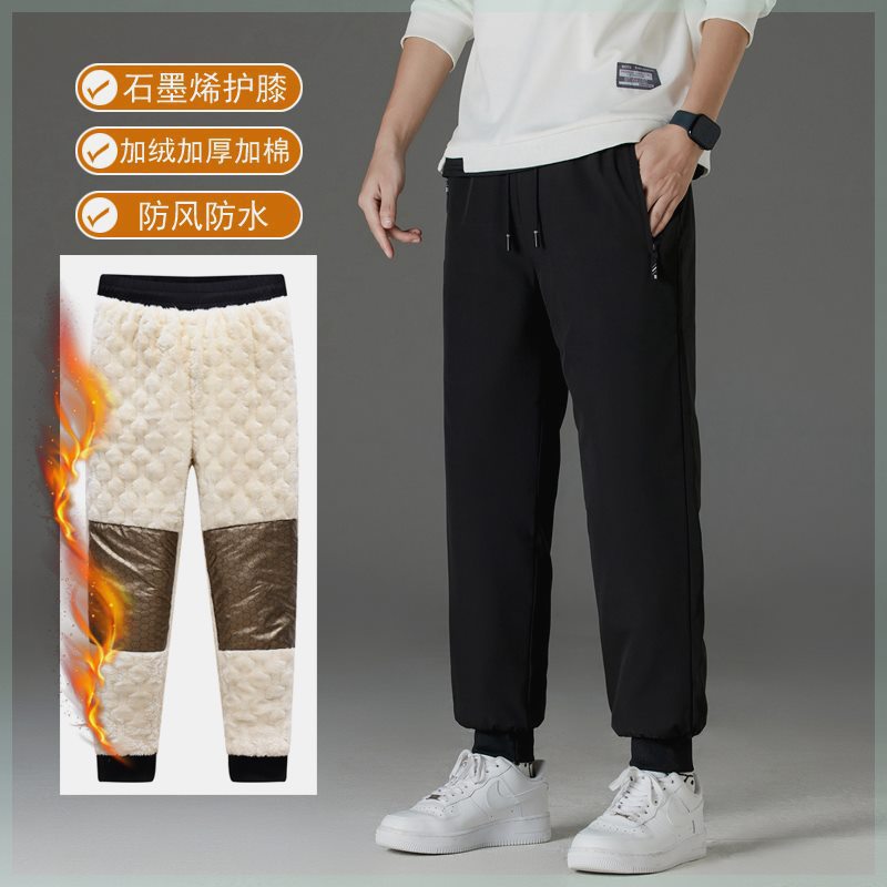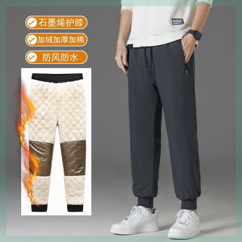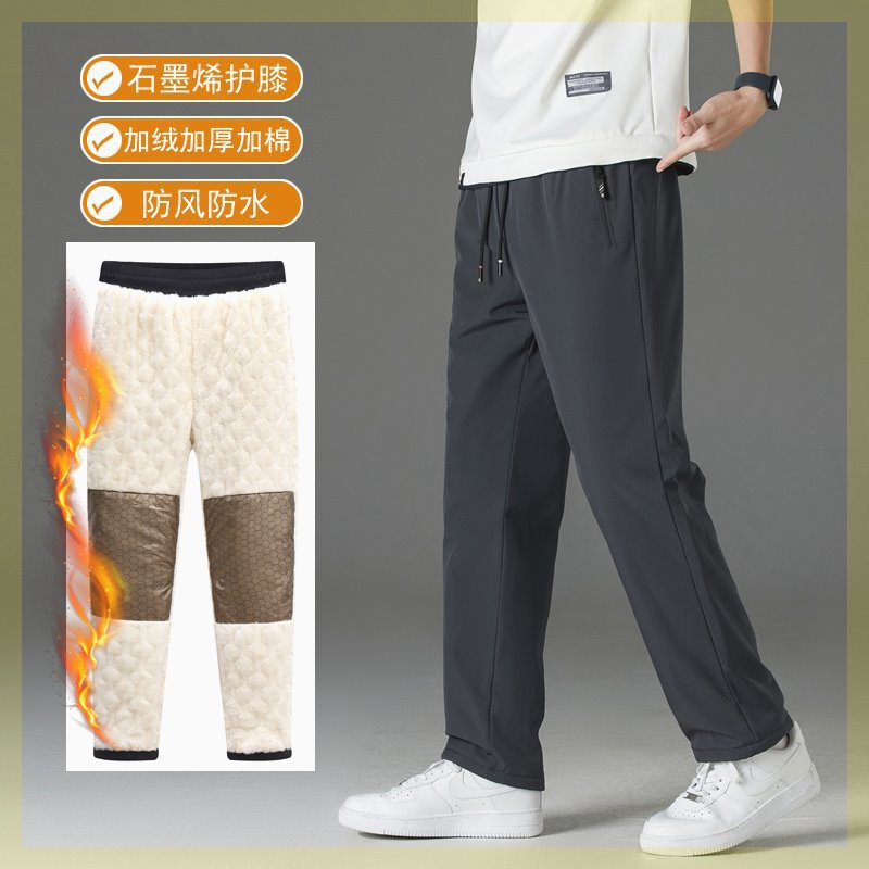 새로운 기모 두꺼운 바지 캐주얼 바지 남성 가을과 겨울 방풍 방수 느슨한 스트레이트 스포츠 따뜻한면 바지 도매