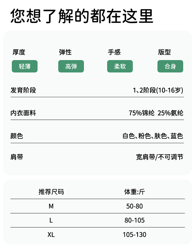 여아 속옷 학생 중학생 12-16 세 여학생 개발 편안하고, 가볍고, 통기성, 볼록 방지, 고탄성, 무더운스토어 가기