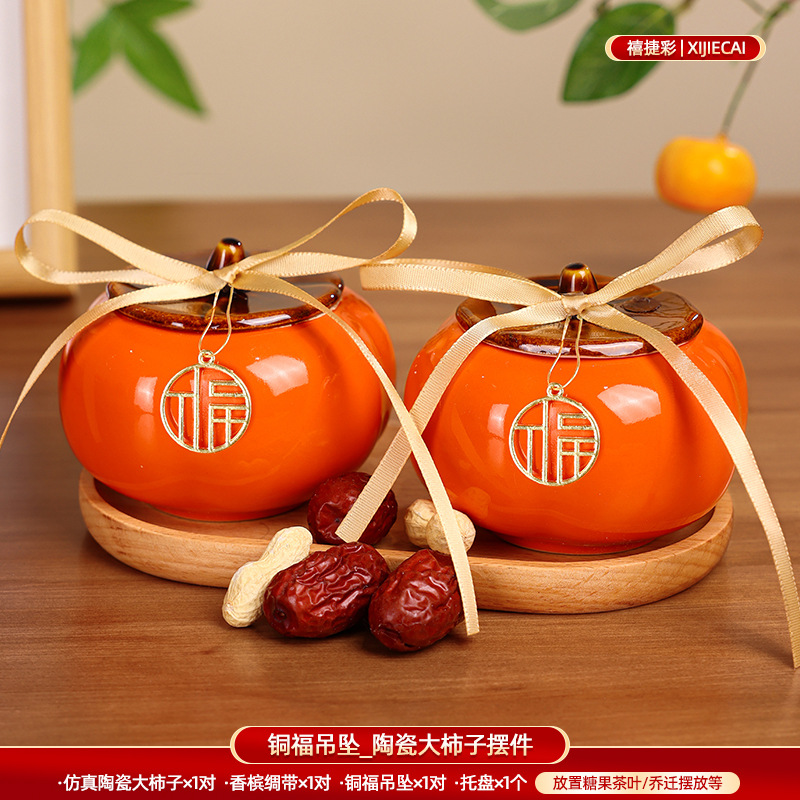 • [선물 상자 포함] 세라믹 감 2개, 감 루이 펜던트 2개