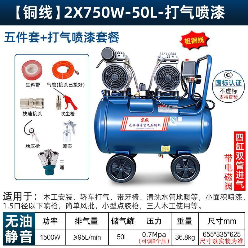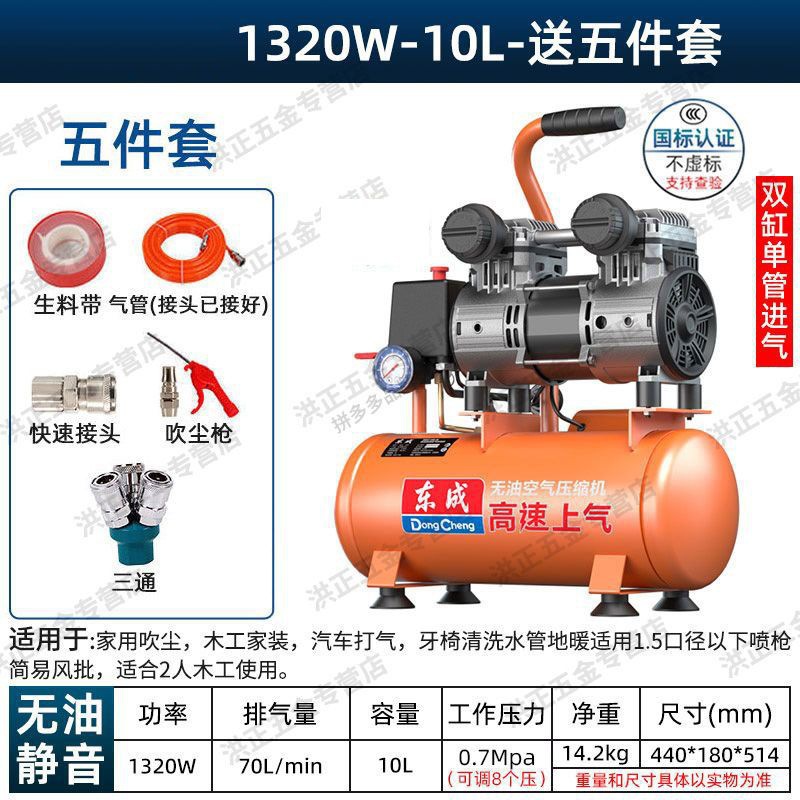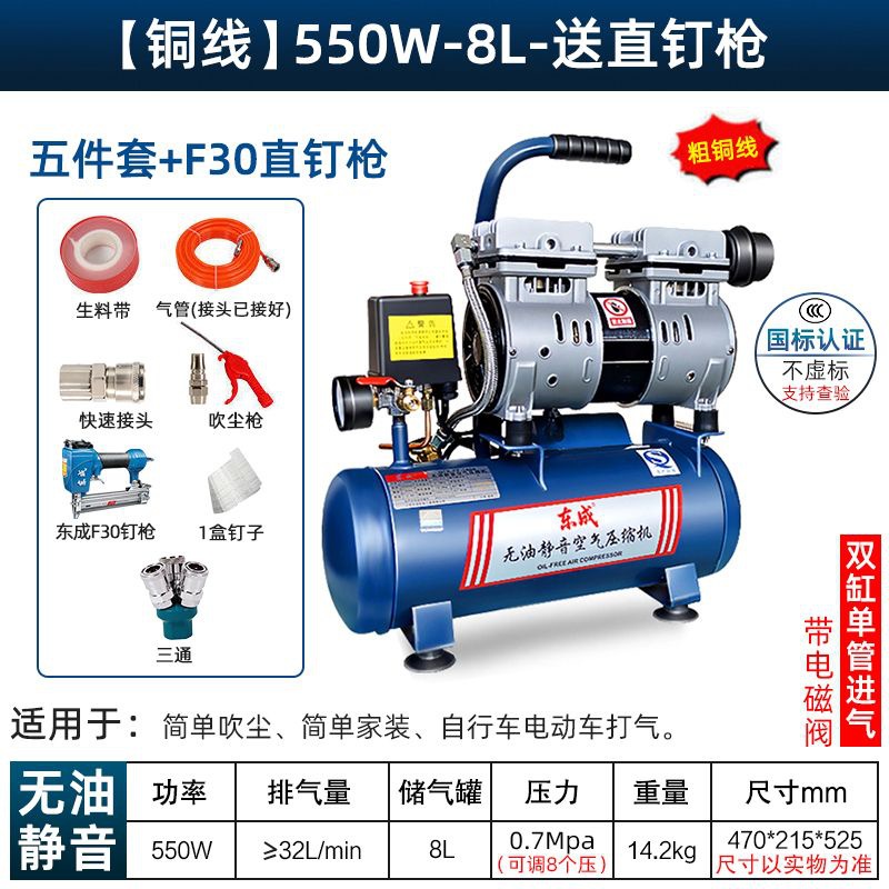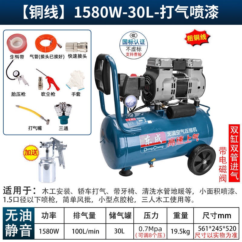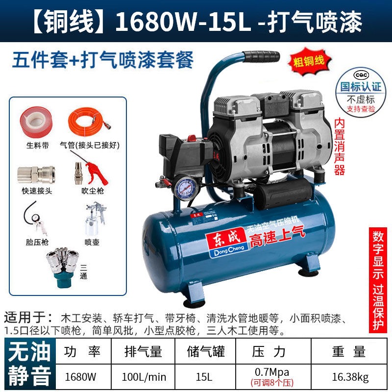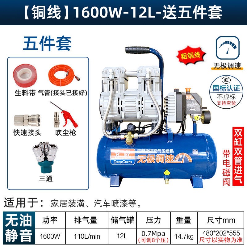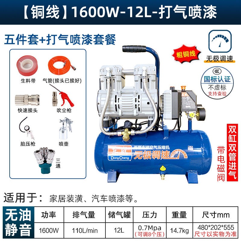 새로운 Dongcheng 공기 펌프 기름없는 조용한 공기 압축기 220V 고압 공기 압축기 페인트 목공 치과 가스 파운드