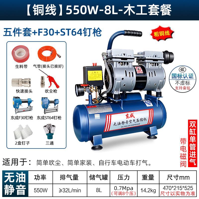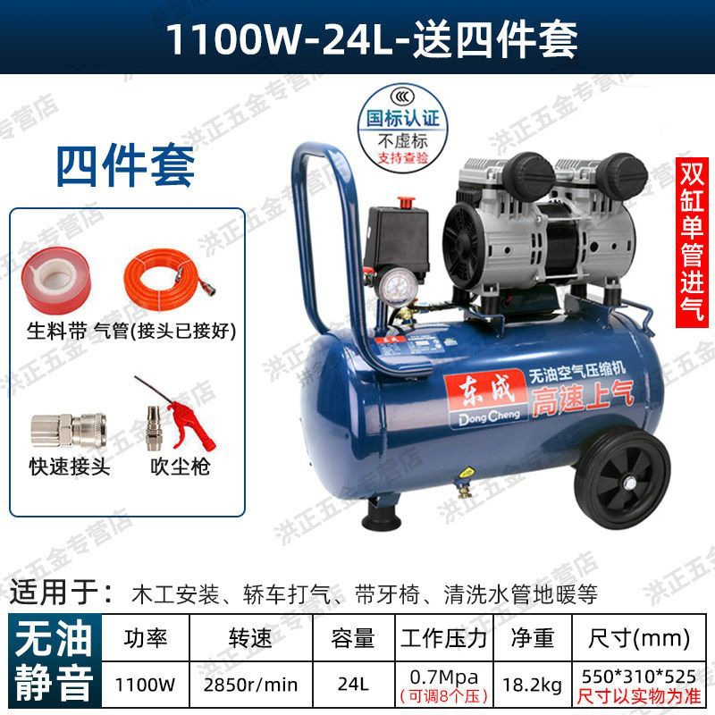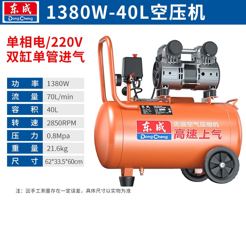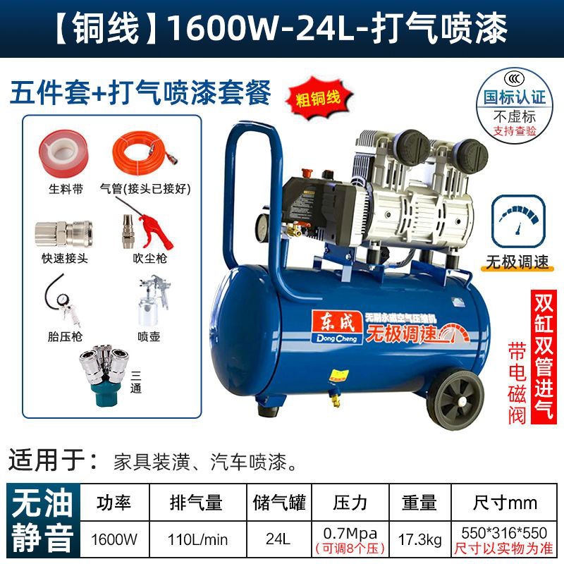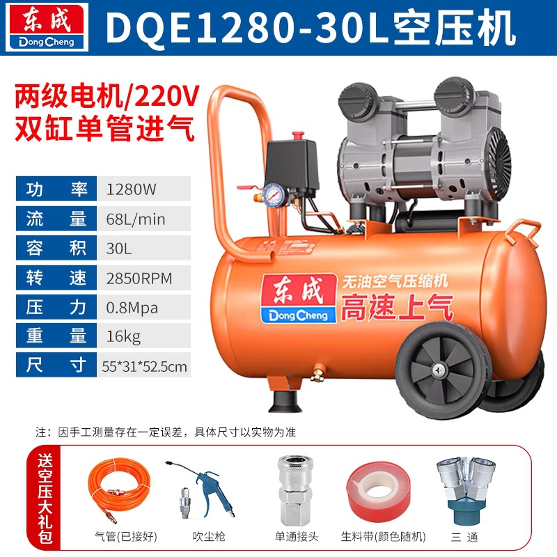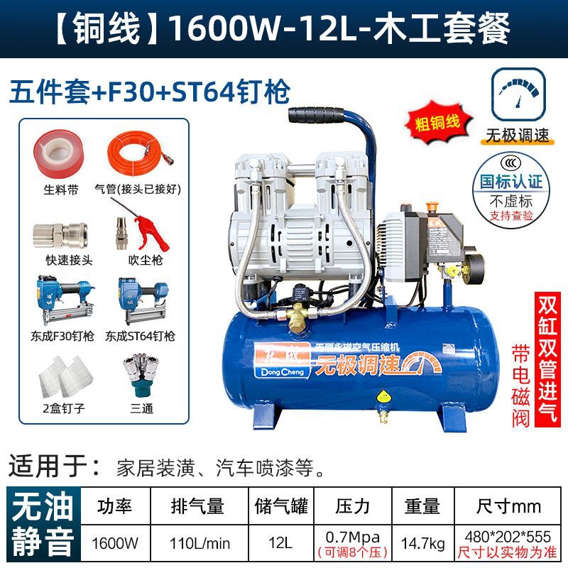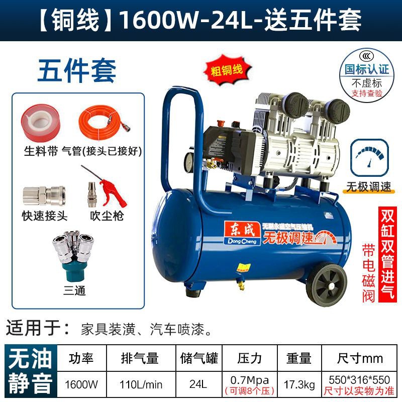 새로운 Dongcheng 공기 펌프 기름없는 조용한 공기 압축기 220V 고압 공기 압축기 페인트 목공 치과 가스 파운드
