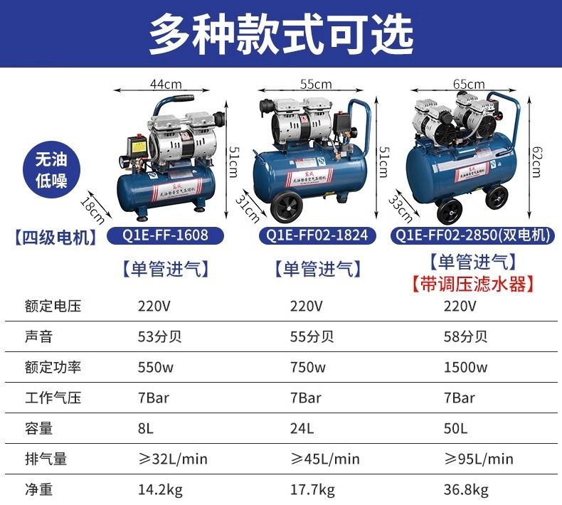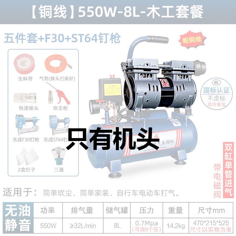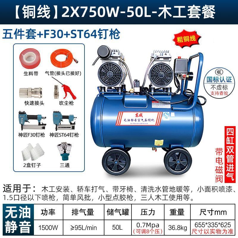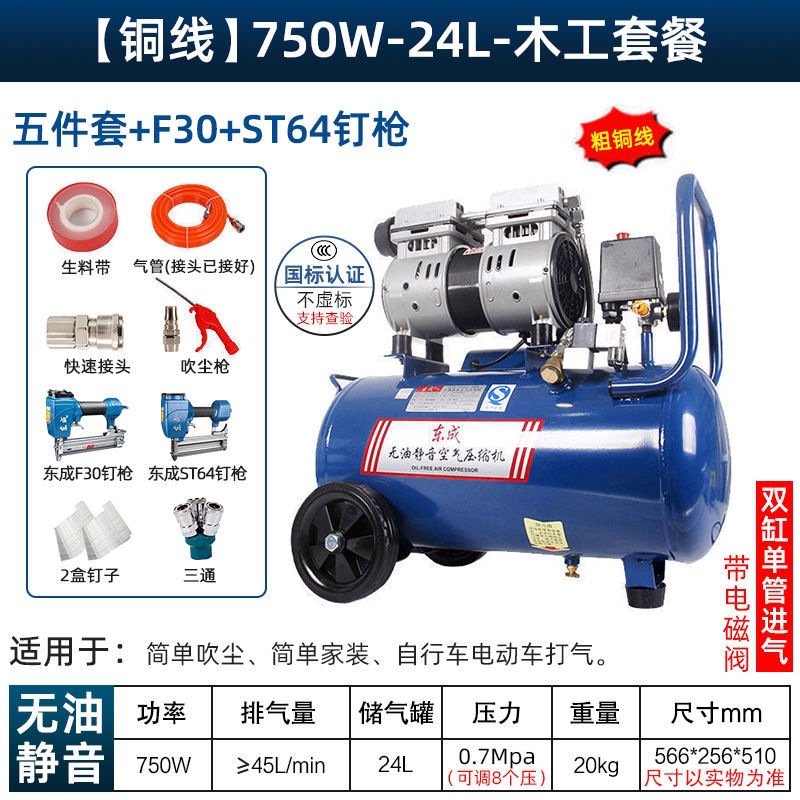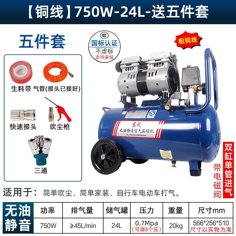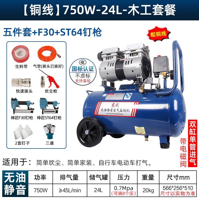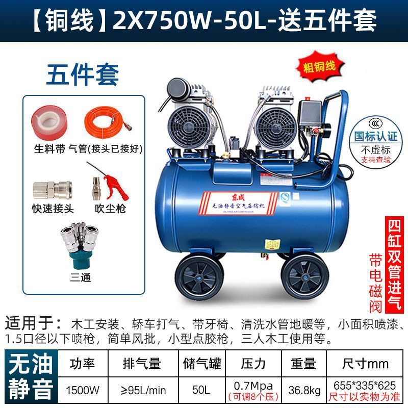 새로운 Dongcheng 공기 펌프 기름없는 조용한 공기 압축기 220V 고압 공기 압축기 페인트 목공 치과 가스 파운드
