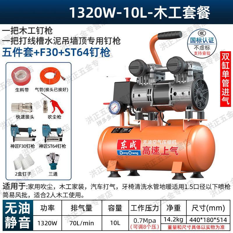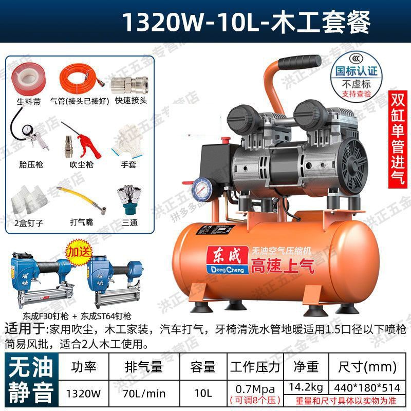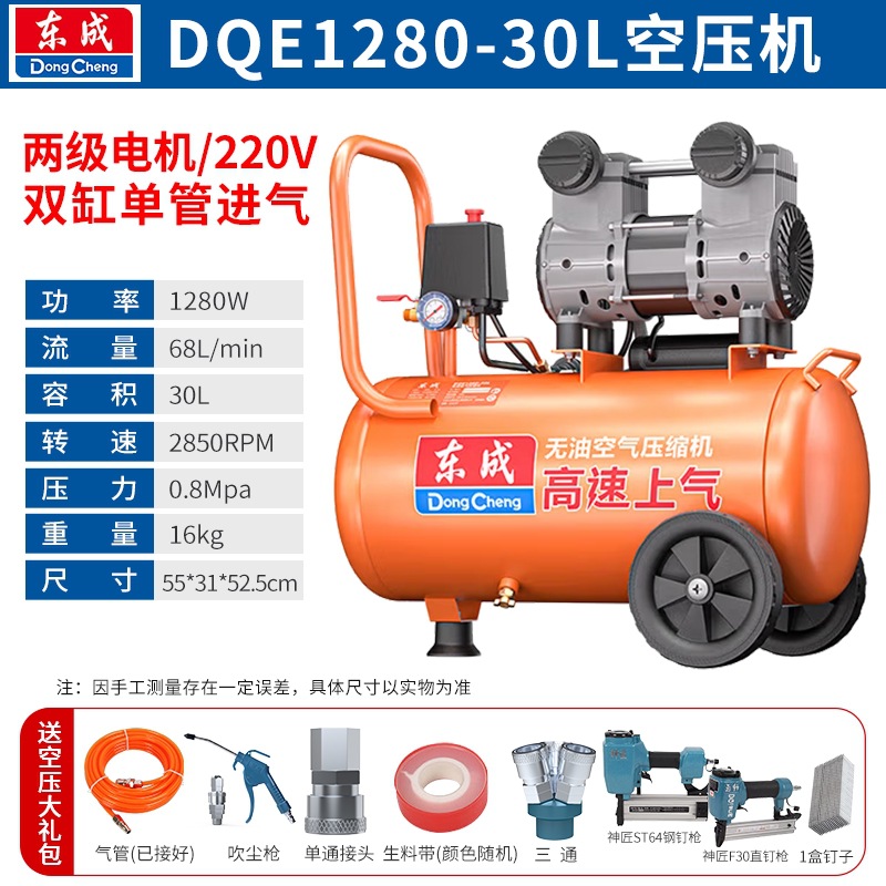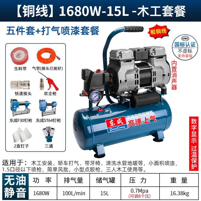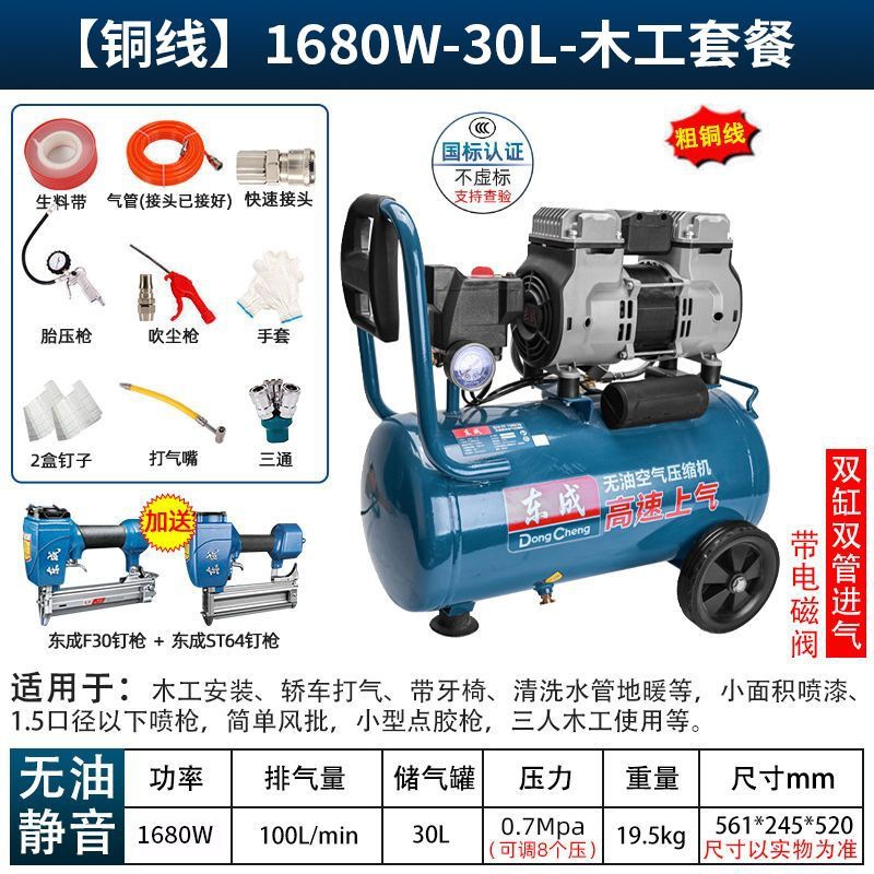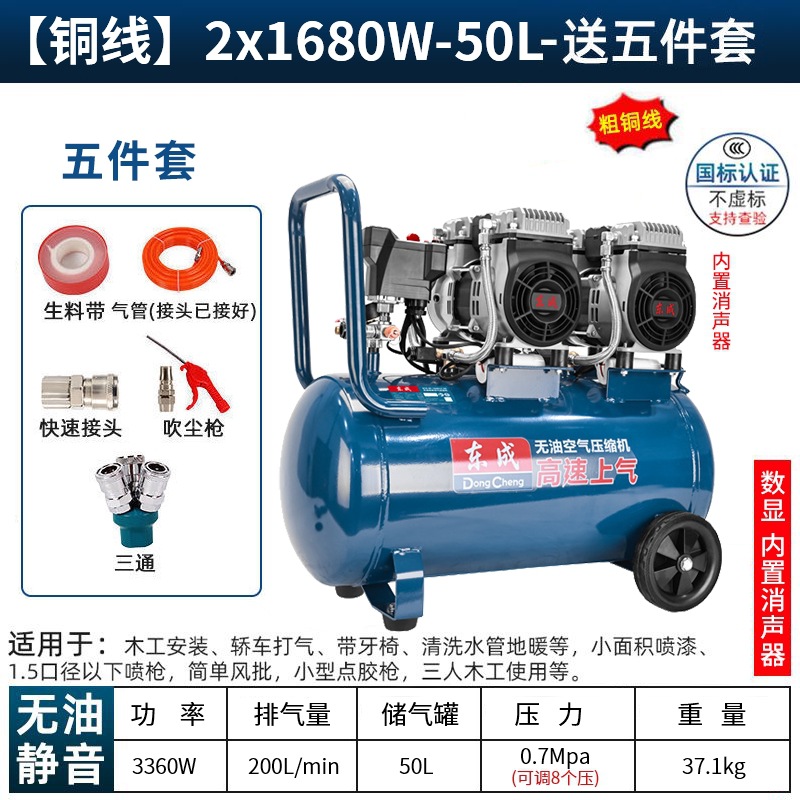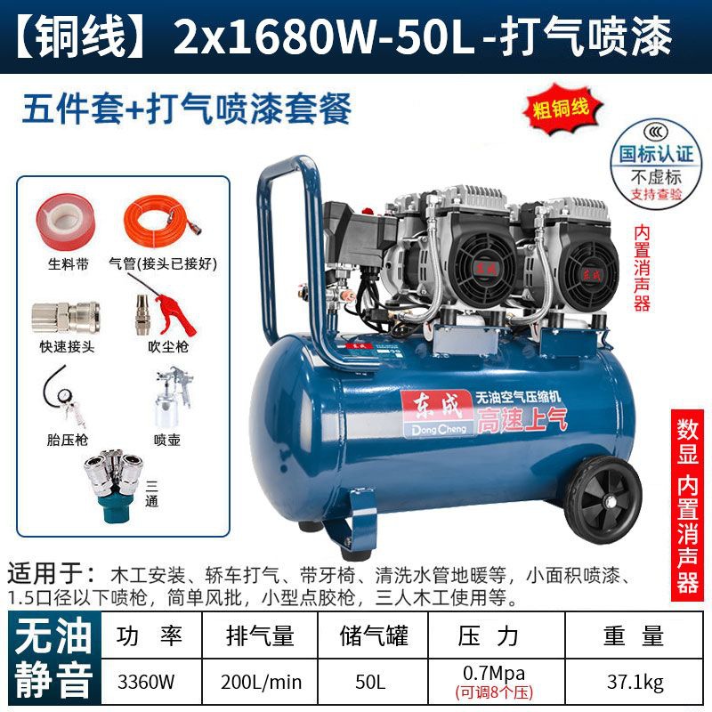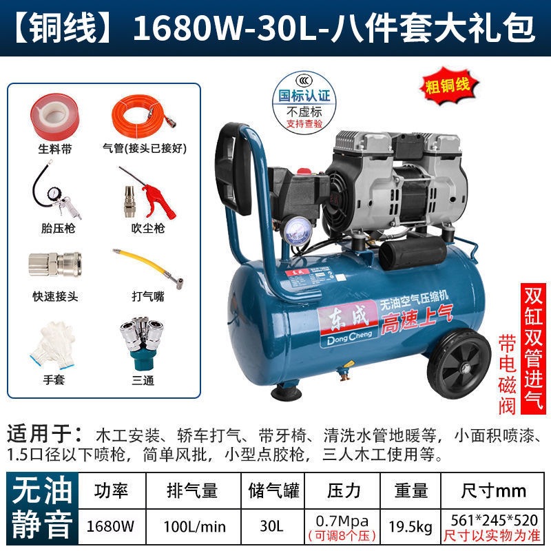 새로운 Dongcheng 공기 펌프 기름없는 조용한 공기 압축기 220V 고압 공기 압축기 페인트 목공 치과 가스 파운드스토어 가기