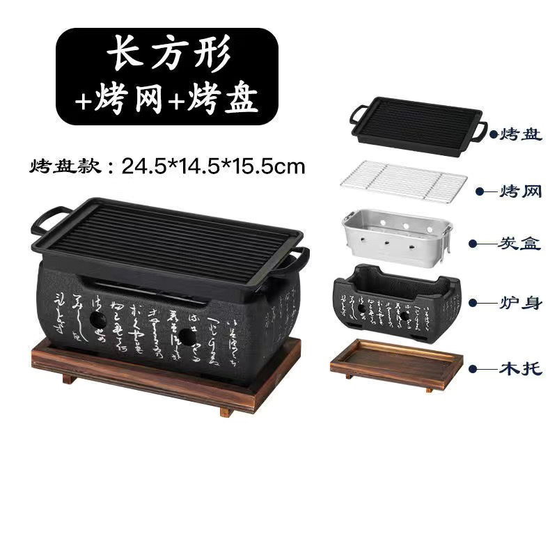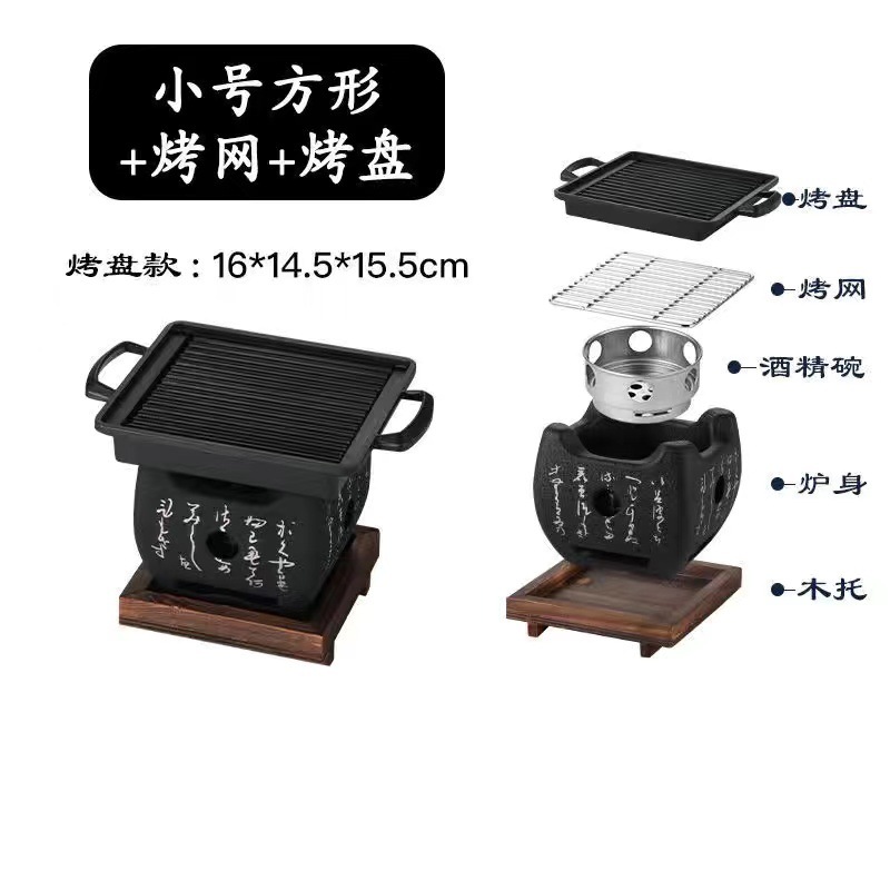 일본식 숯 그릴 바베큐 오븐 지보 BBQ 가정용 실내 알코올 스토브 요리 직사각형 텍스트 오븐 도매스토어 가기