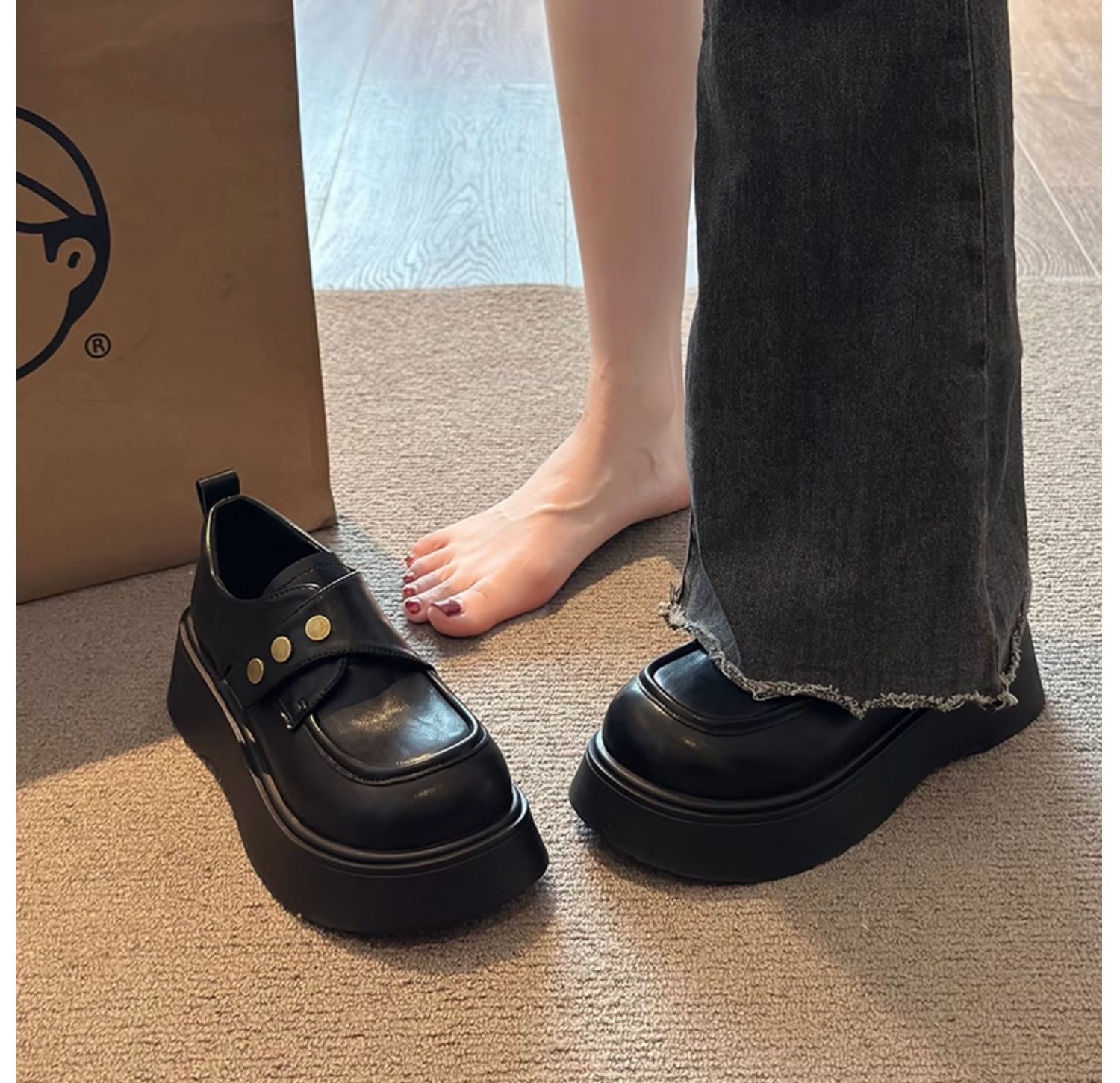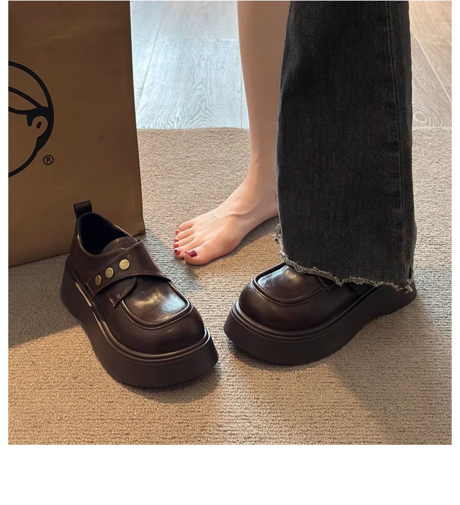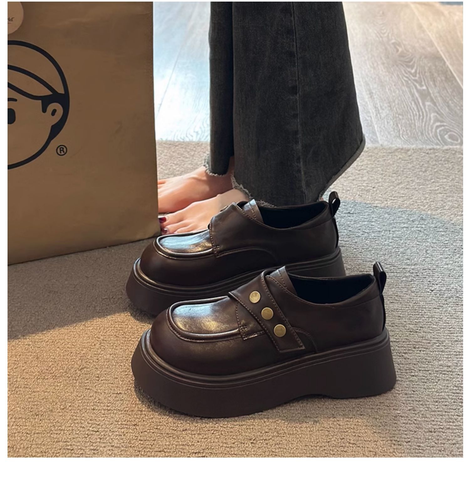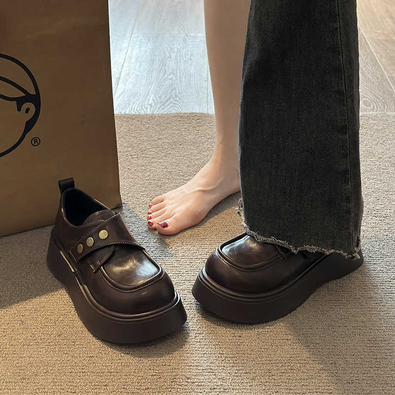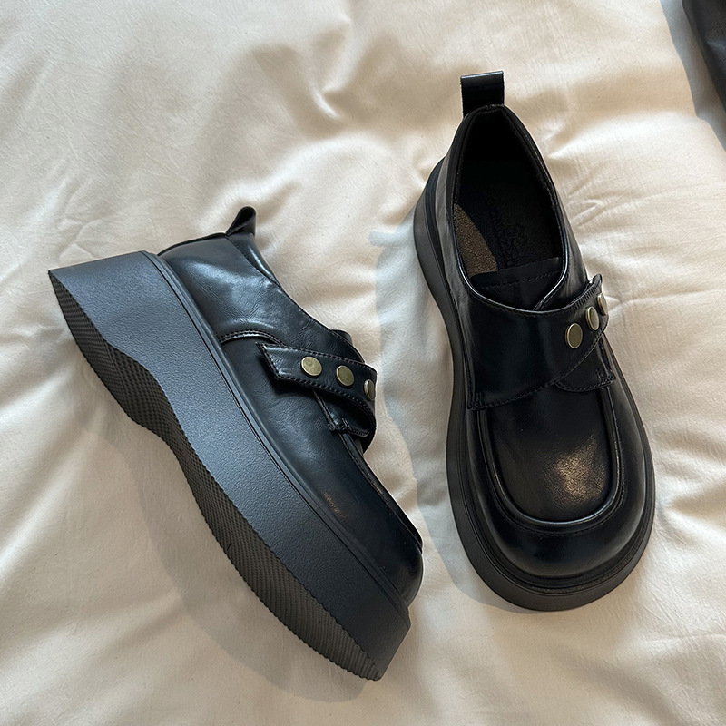 영국 스타일의 두꺼운 밑창 가죽 신발 여성 2025 년 봄 새로운 프랑스 캐주얼 조커 슬립 온 로퍼 도매스토어 가기