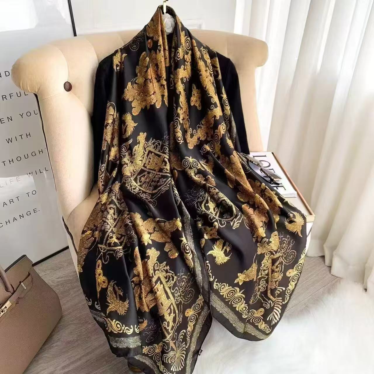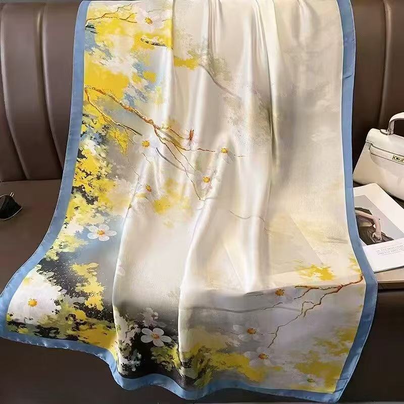 봄과 여름 이중 사용 실크 새로운 유럽과 미국 스타일 올 매치 항주 실크 패션 통근 긴 스카프 목도리스토어 가기