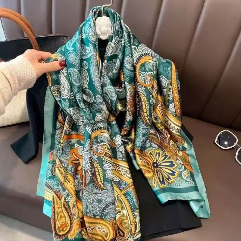 봄과 여름 이중 사용 실크 새로운 유럽과 미국 스타일 올 매치 항주 실크 패션 통근 긴 스카프 목도리