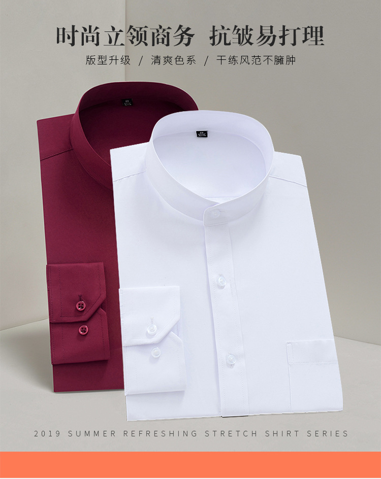 새로운 중산 세트 칼라 셔츠 남자의 긴 소매 중국 빨간 빨간 사업 셔츠 셔츠 한국 스타일 셔츠 JK스토어 가기