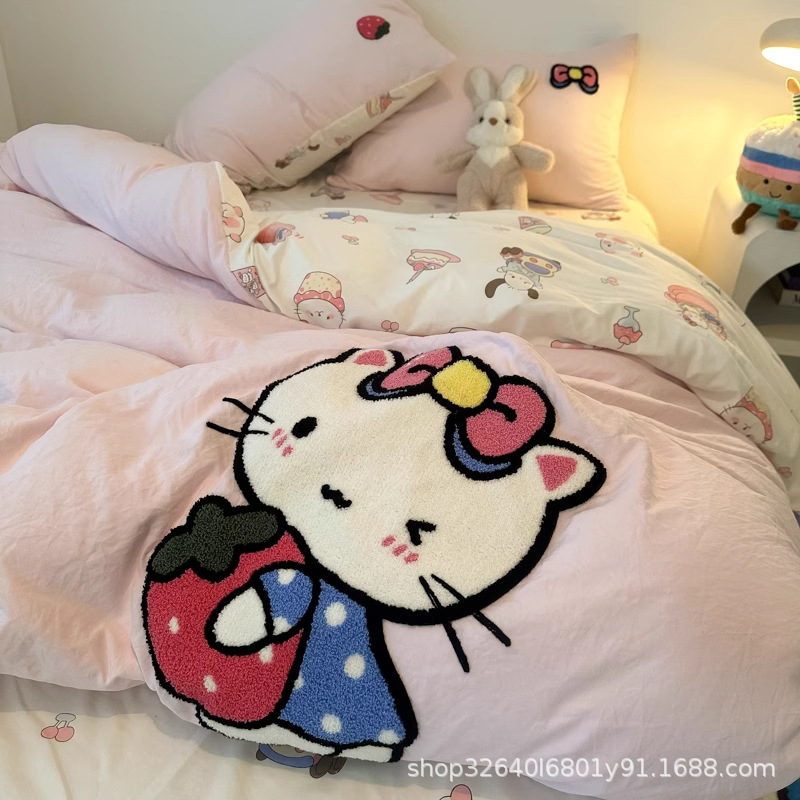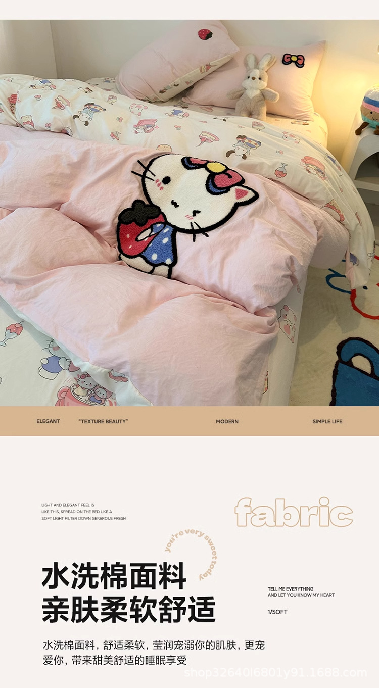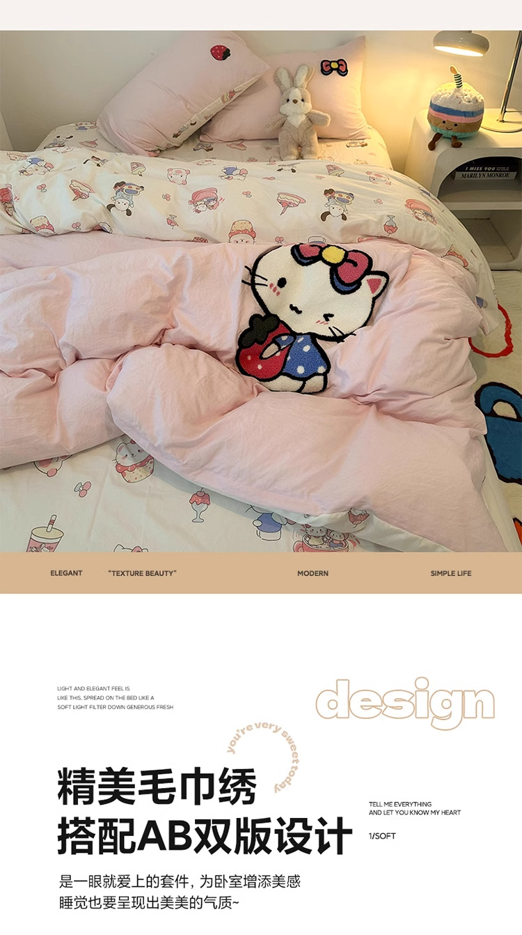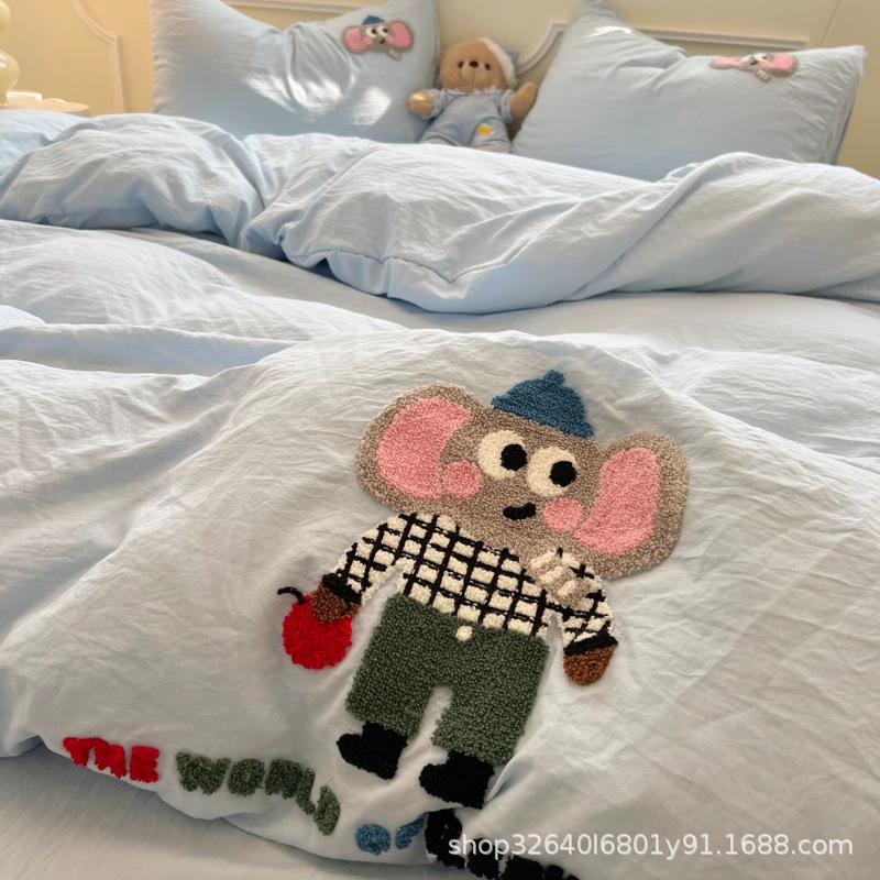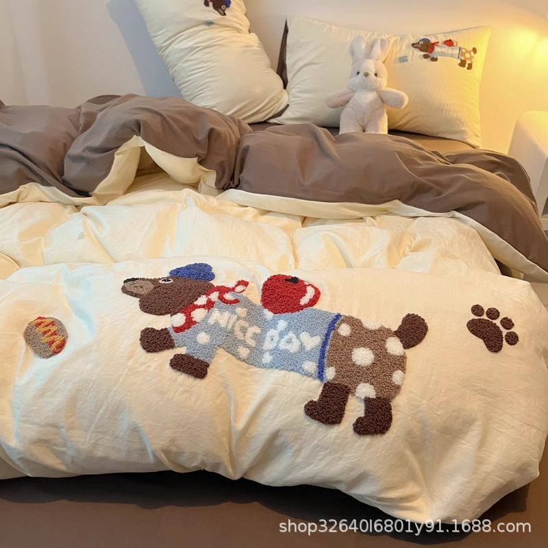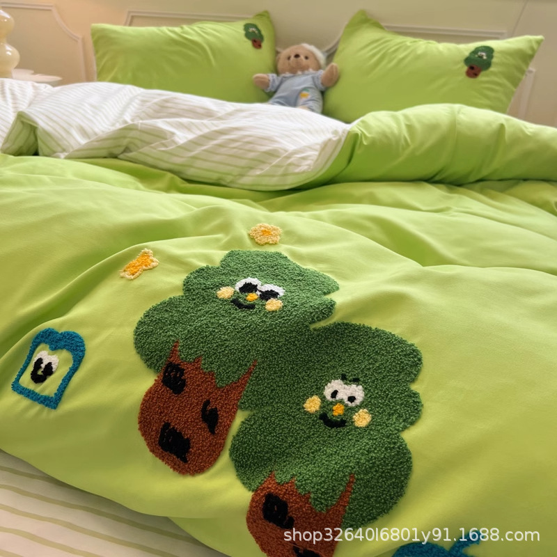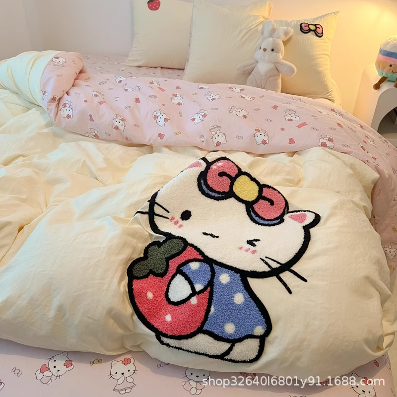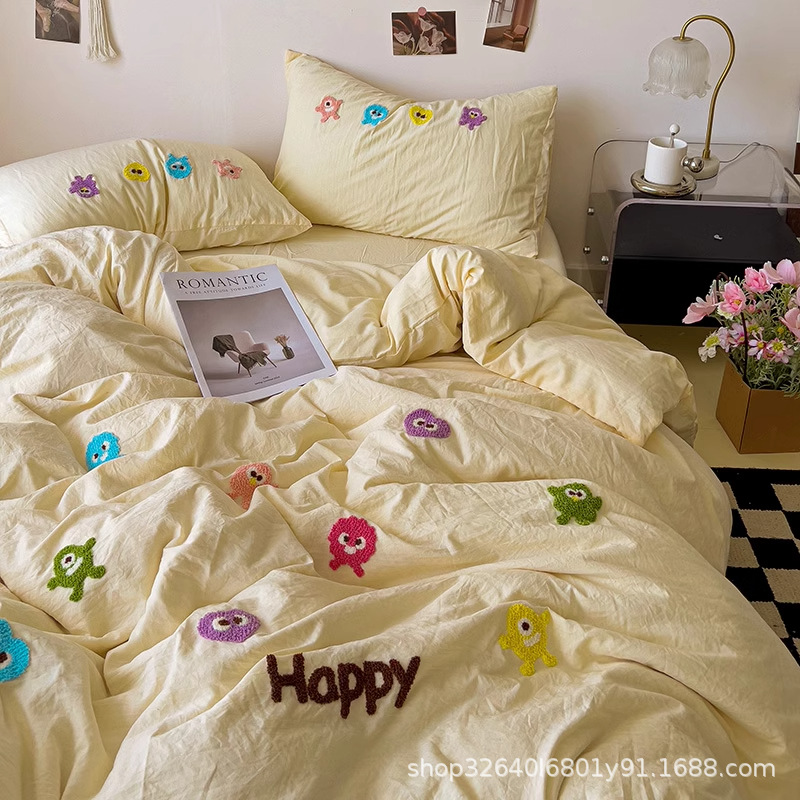 순면 침구 이불 커버 퀼트 커버 봄과 가을 두꺼운 침대 시트 침대 모자 학생 기숙사 3 피스 세트