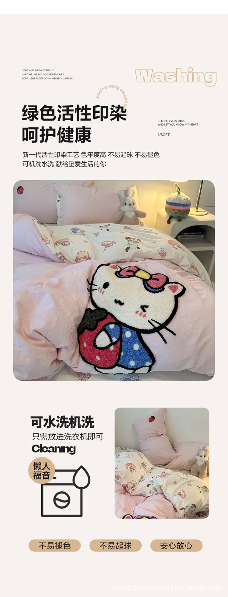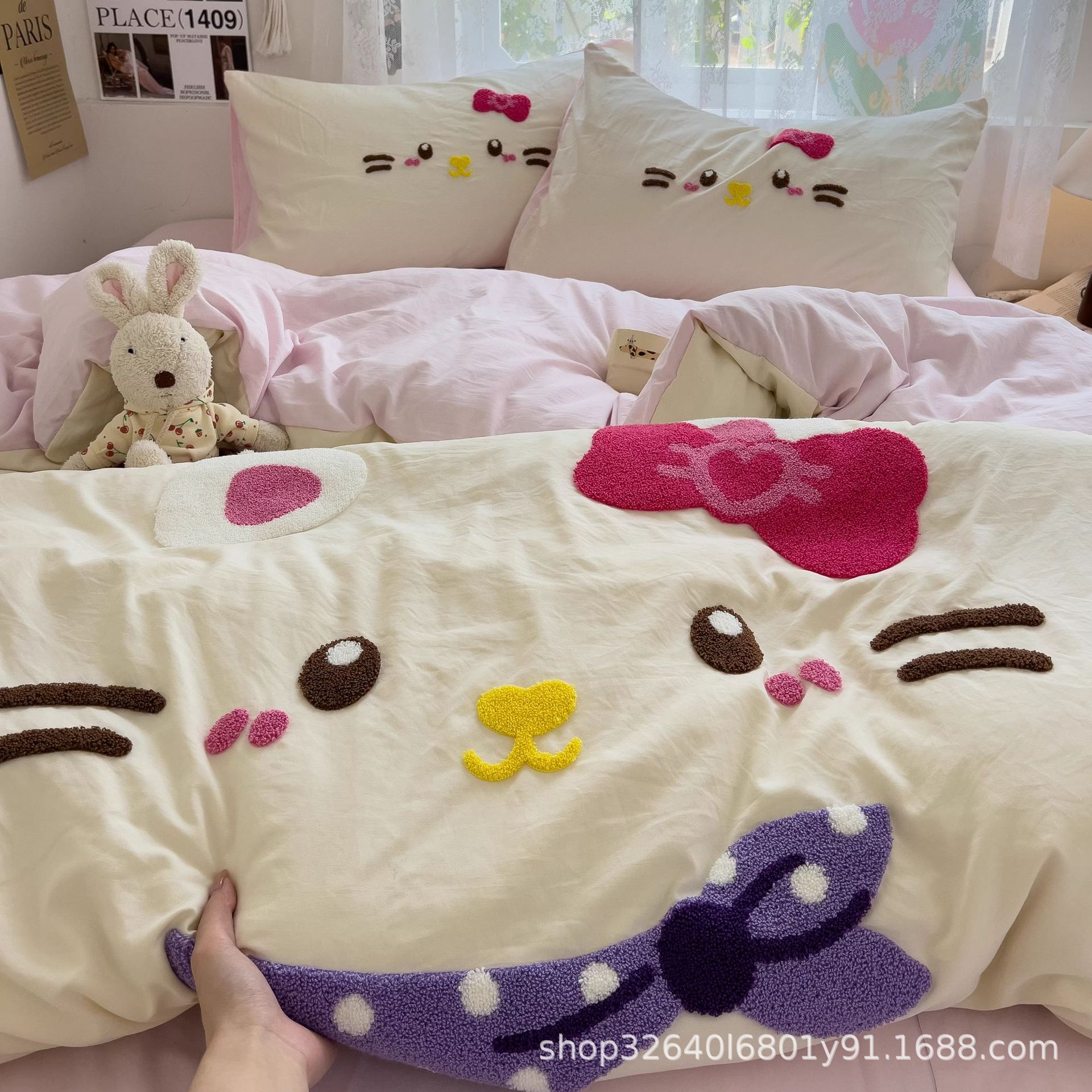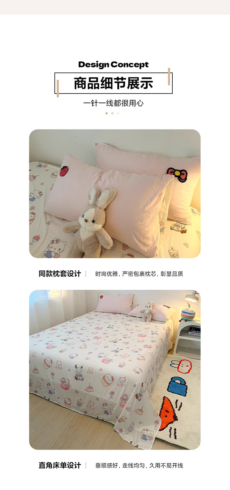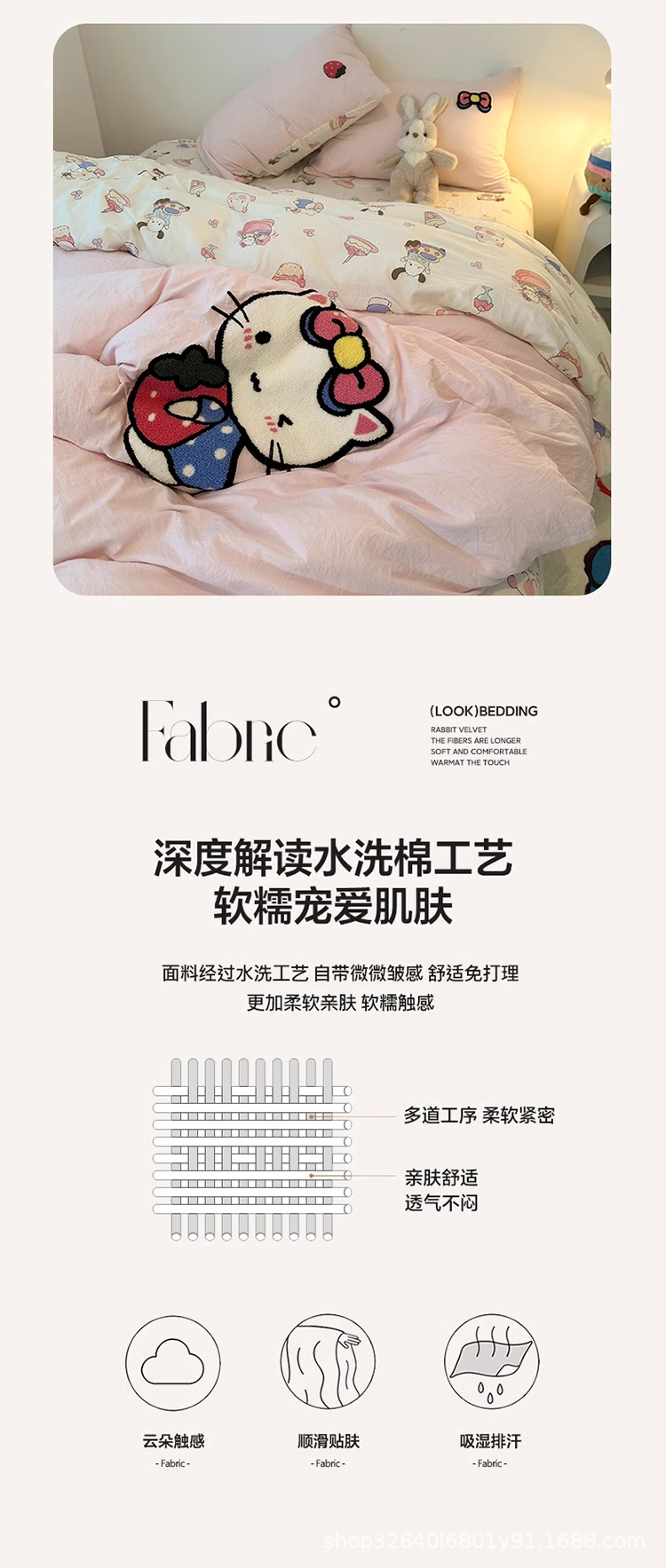 • 안녕하세요 핑크캣-핑크화이트 [슈퍼 소프트 워싱 코튼/부드럽고 피부 친화적이며 보풀이 없음]