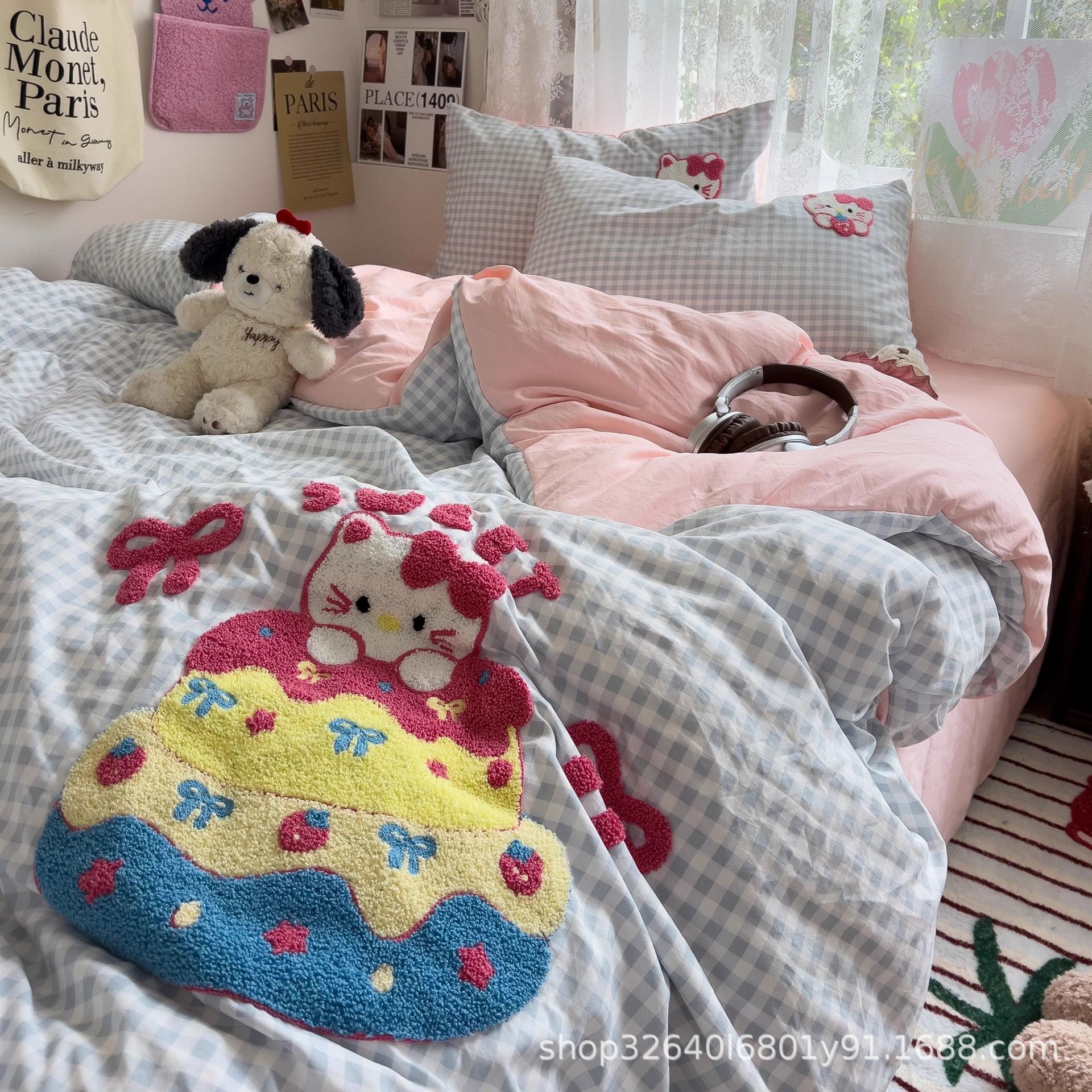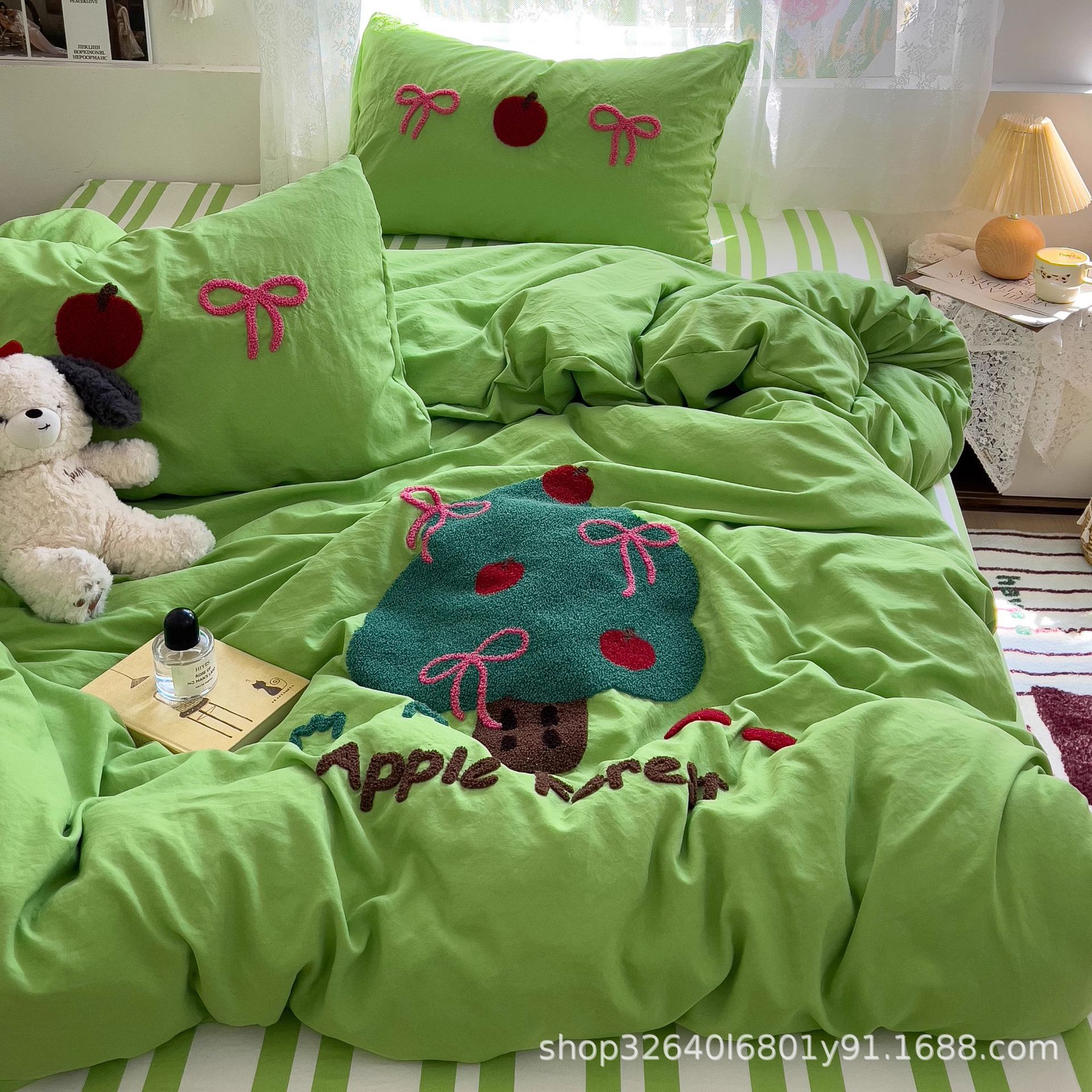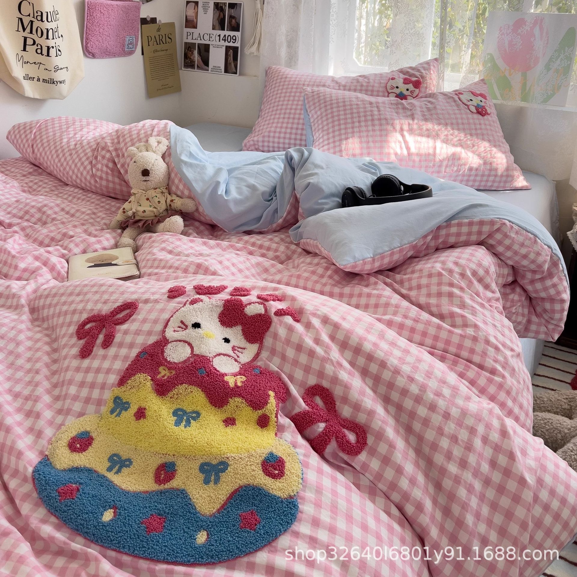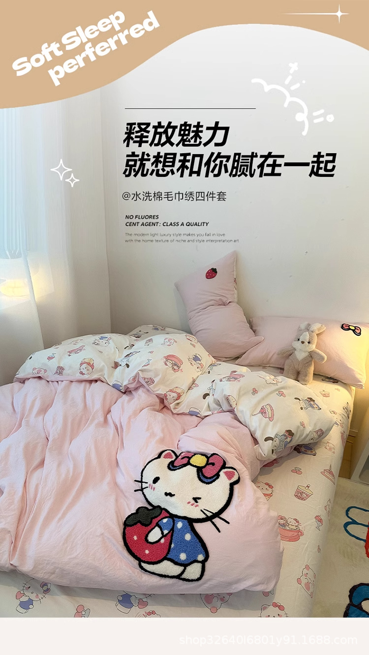 순면 침구 이불 커버 퀼트 커버 봄과 가을 두꺼운 침대 시트 침대 모자 학생 기숙사 3 피스 세트스토어 가기