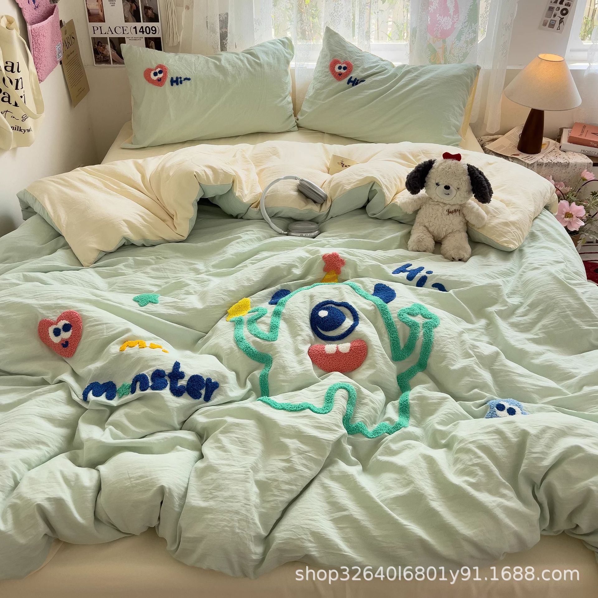 • 몬스터베이비-크림옐로우그린 [슈퍼소프트 워싱 코튼/부드럽고 피부친화적이며 보풀이 없음]