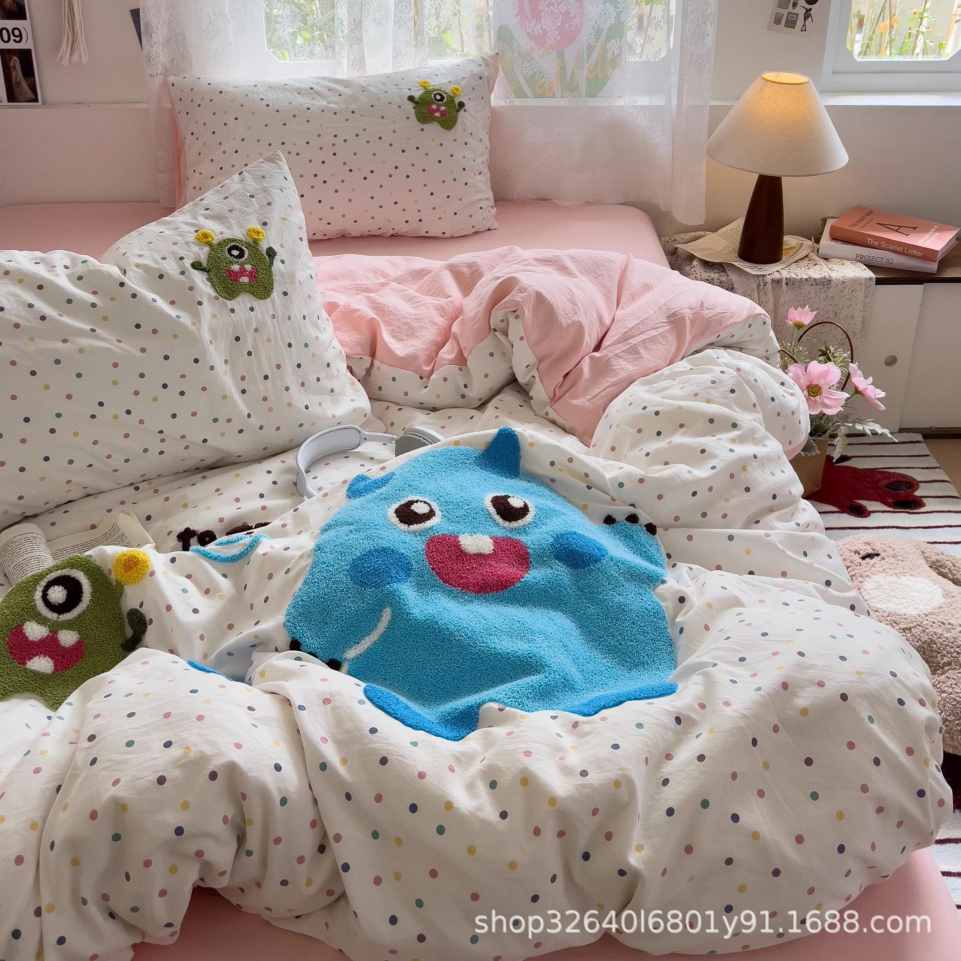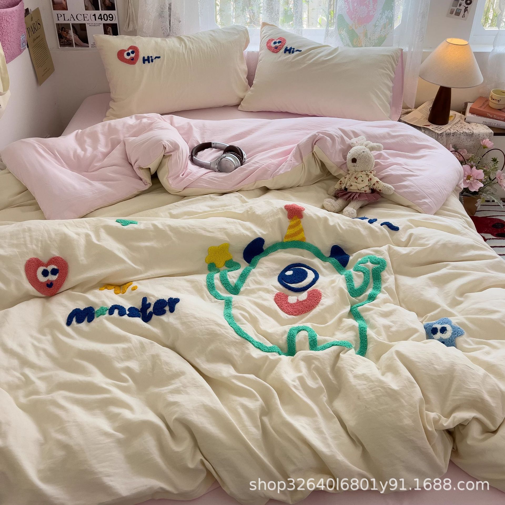 • 리틀몬스터 - 밀크화이트 라이트핑크 [슈퍼 소프트 워싱 코튼/부드럽고 피부 친화적이며 보풀이 없음]