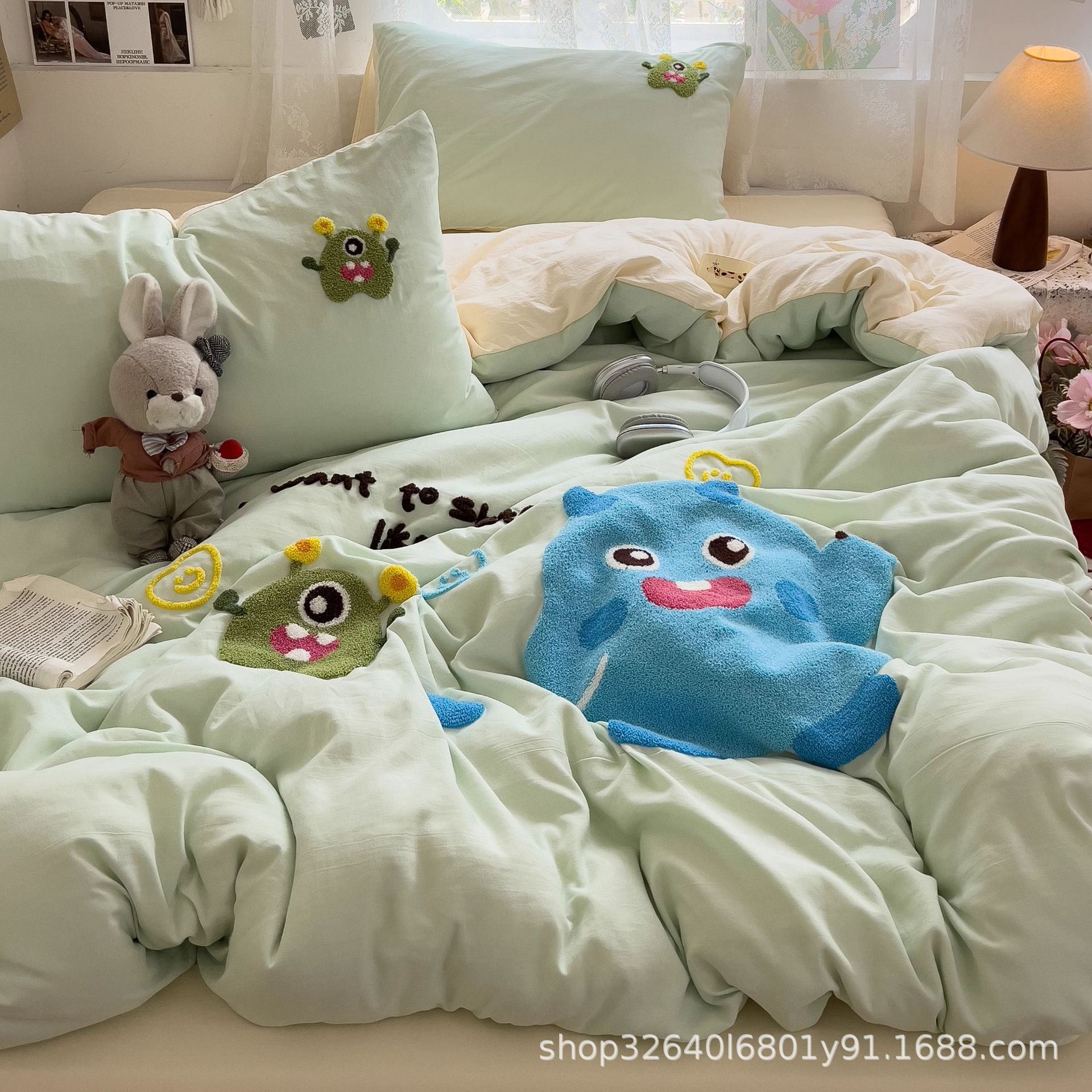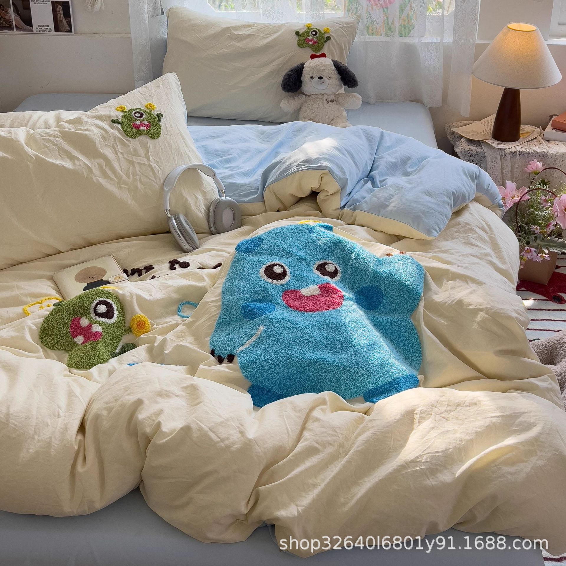 • 몬스터베이비-크림블루 [슈퍼소프트 워싱 코튼/부드럽고 피부친화적이며 보풀이 없음]