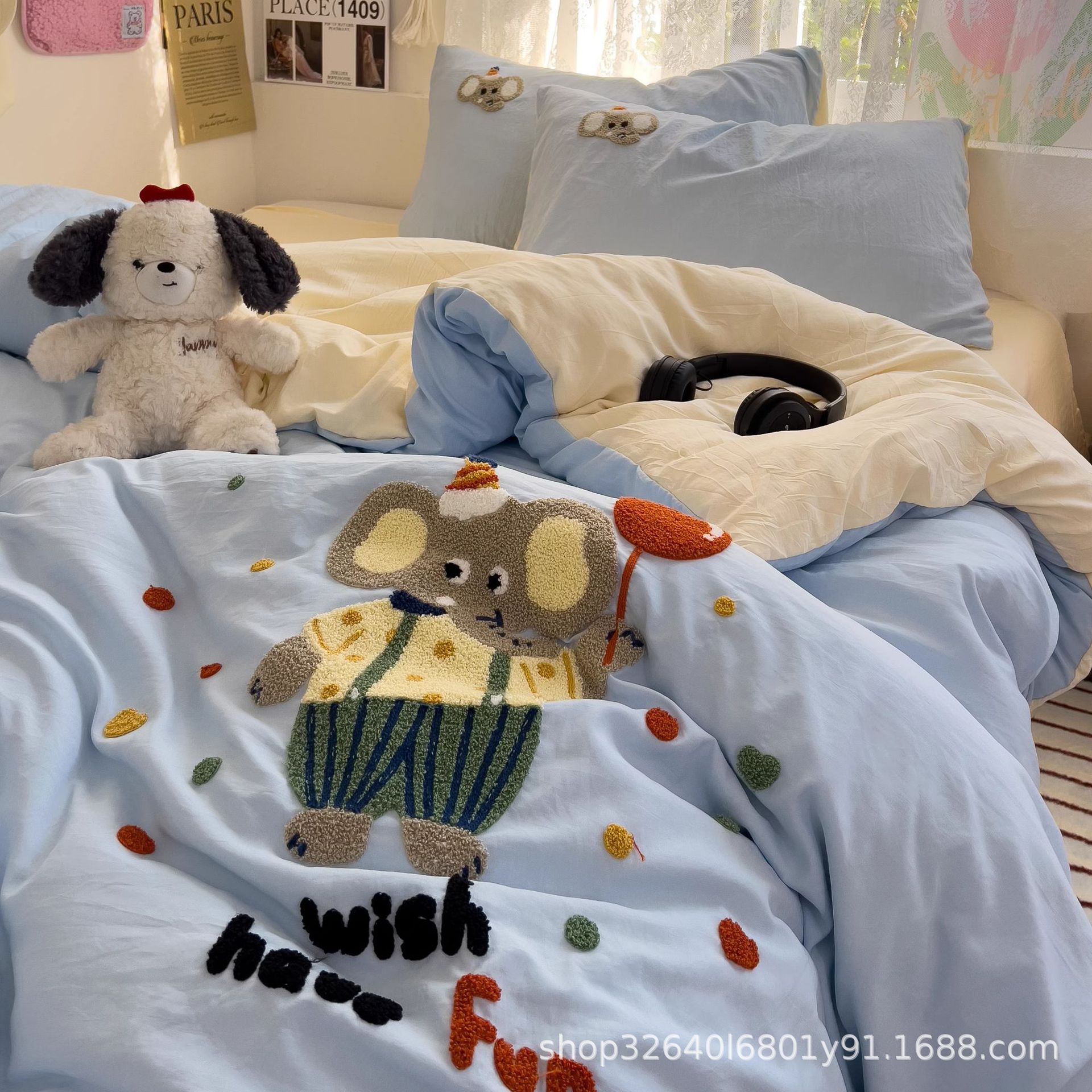 • 미스터 엘리펀트-밀크블루 [슈퍼 소프트 워싱 코튼/부드럽고 피부 친화적이며 보풀이 없음]