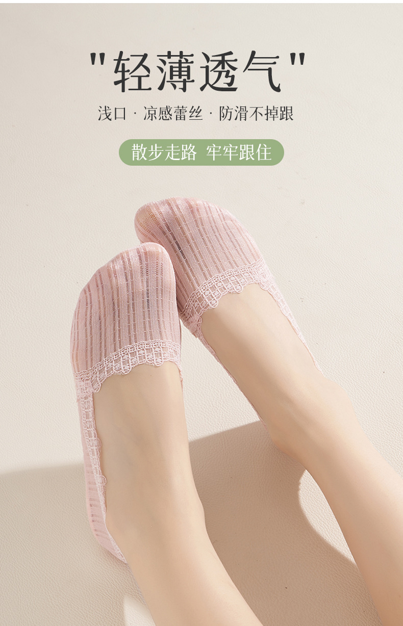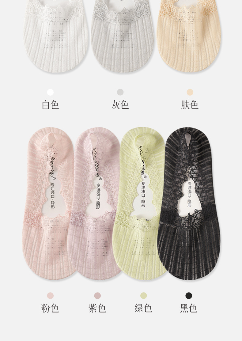 아이스 실크 보트 양말 여성의 미끄럼 방지 실리콘은 봄과 여름 얇은 레이스 얕은 입 보이지 않는 양말로 떨어지지 않습니다.스토어 가기