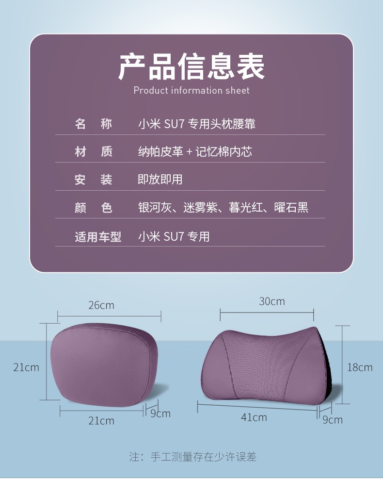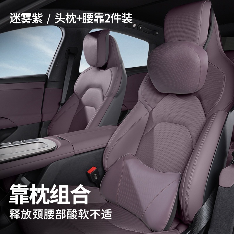 • 가죽머리받침+요추받침 [미스티퍼플] 2종세트