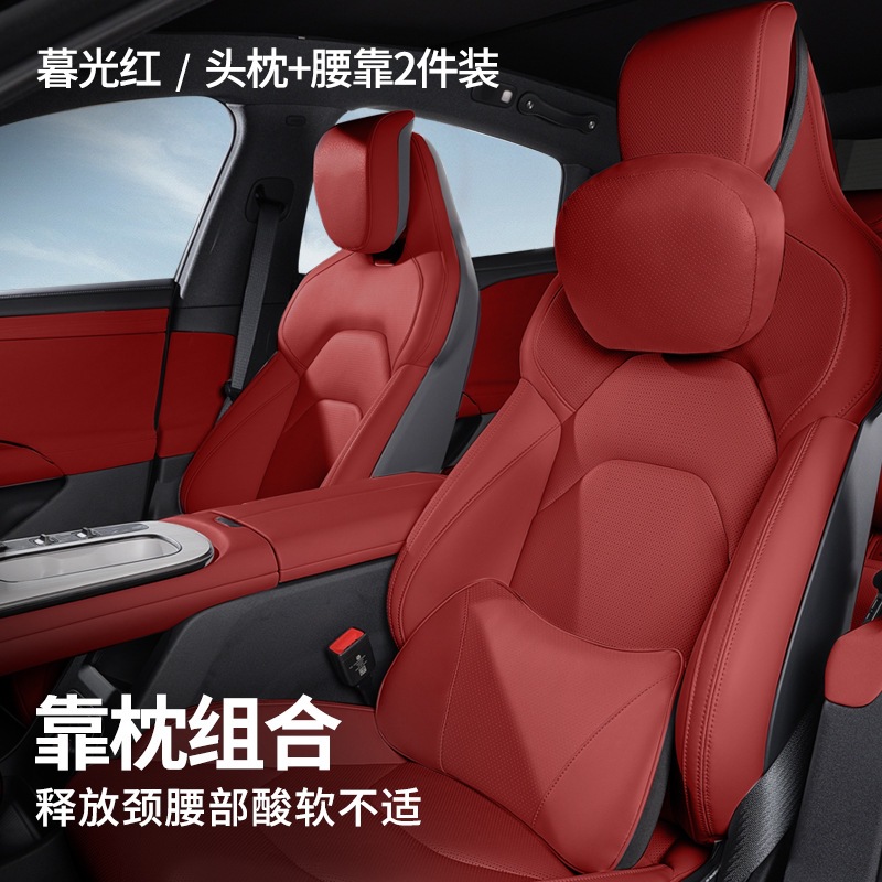 • 가죽머리받침+요추받침 [트와일라잇레드] 2종세트