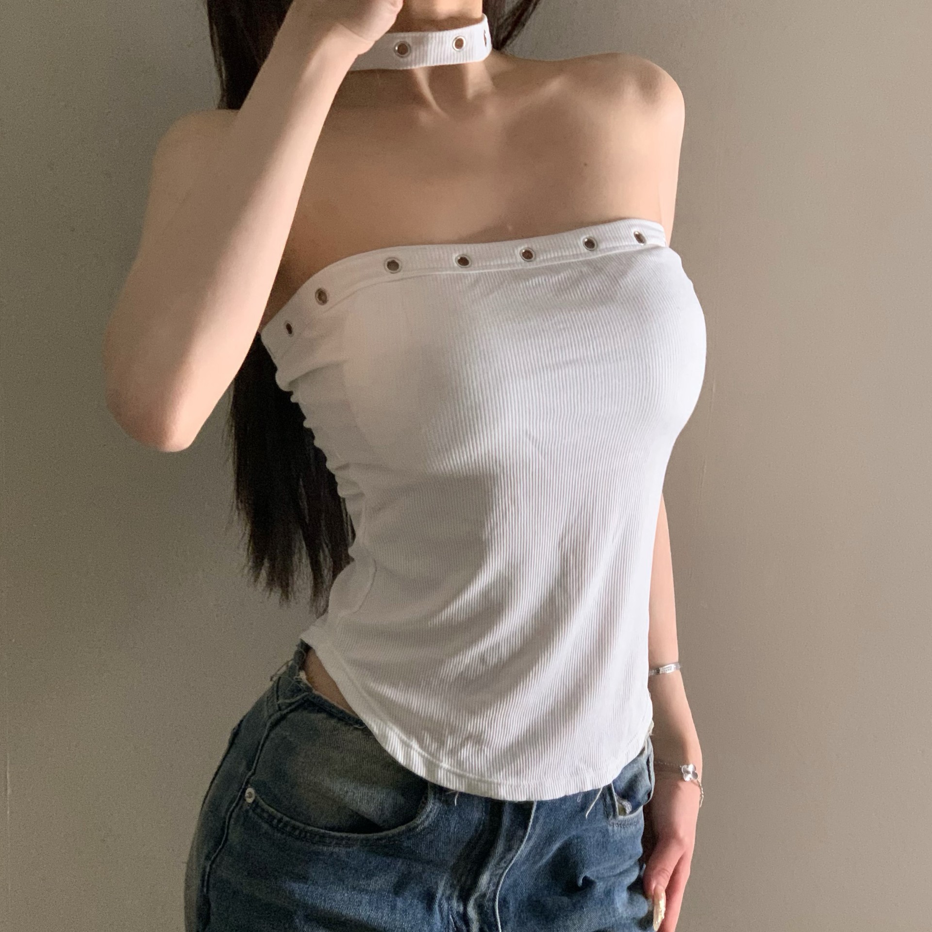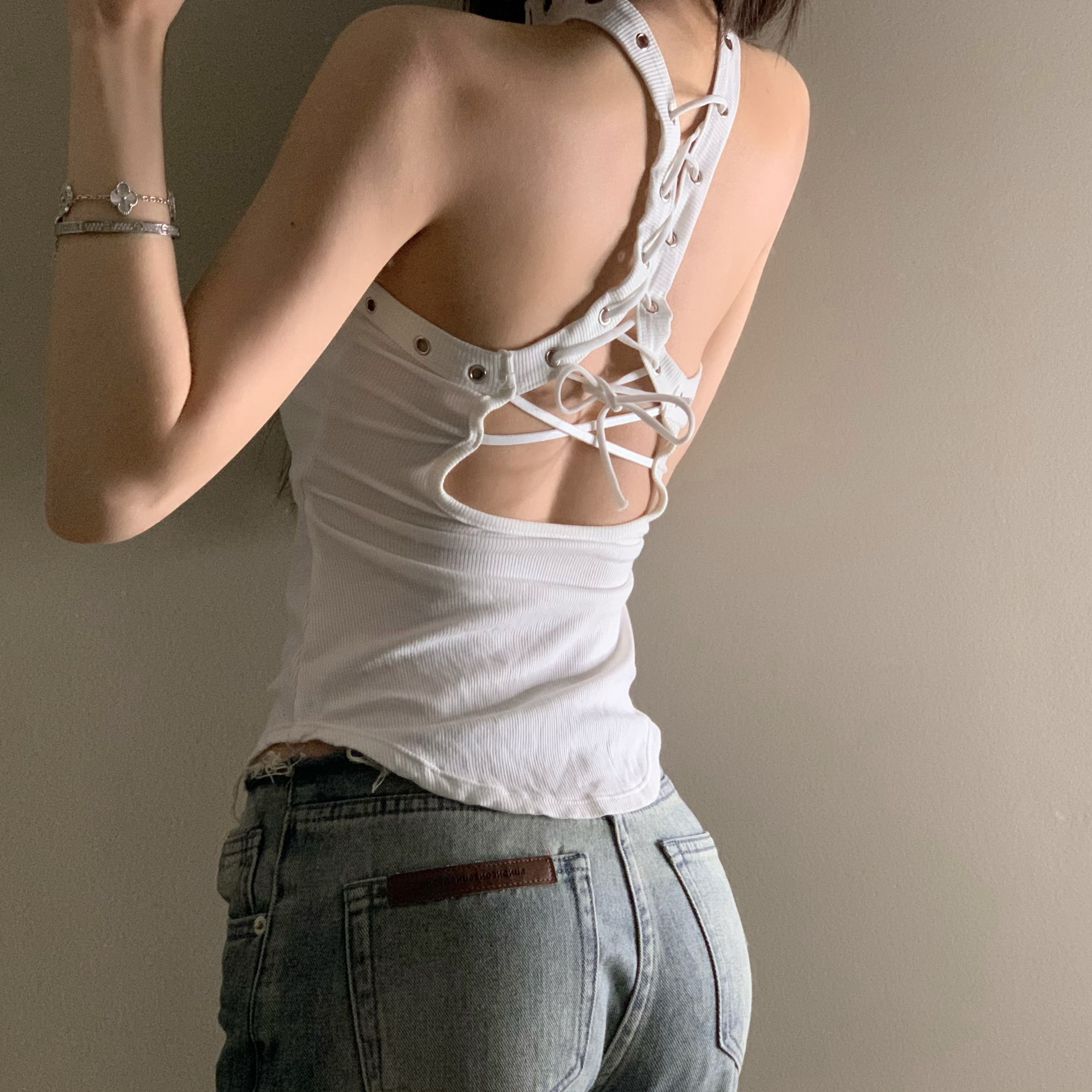 니트 스트랩리스 교수형 목 섹시한 백리스 크로스 스트랩 스트랩 슬림 핏 슬리밍 세련된 틈새 복장 조끼스토어 가기