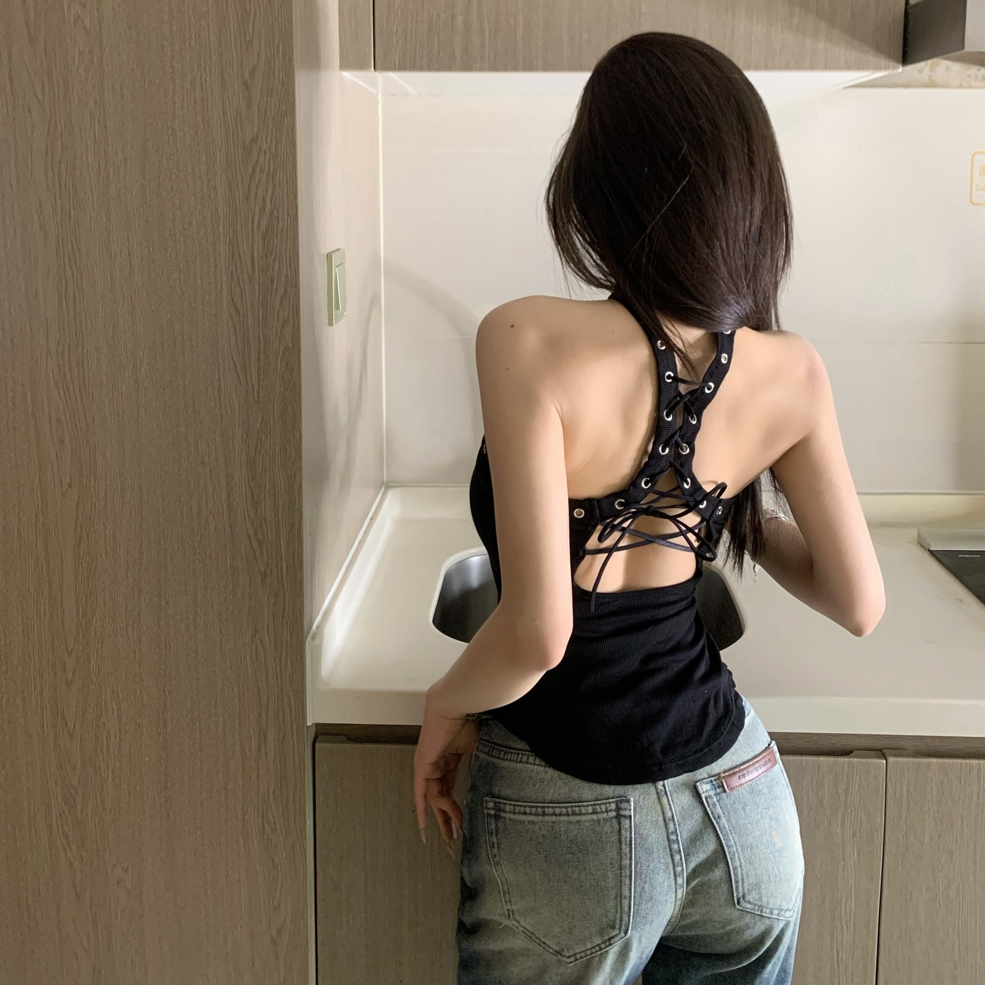 针织抹胸挂脖性感露背交叉吊带绑带式修身显瘦别致小众外穿背心女