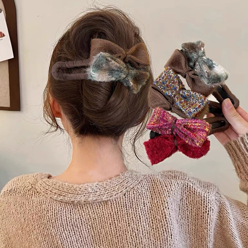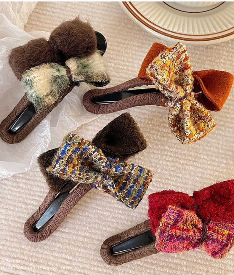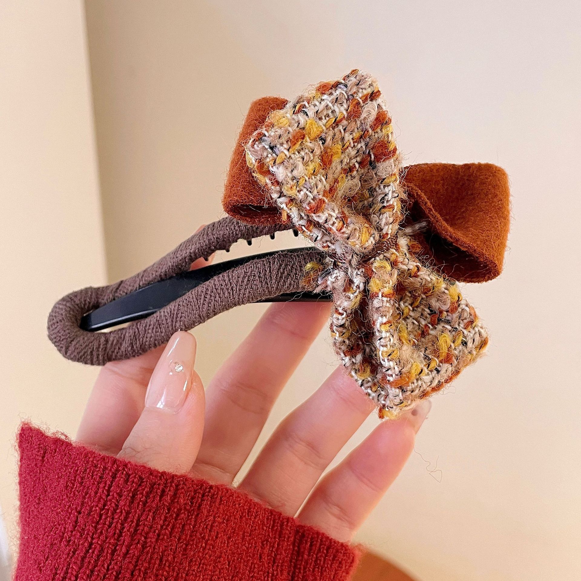 국경 간 폭발 작은 샤넬 스타일 활 봉제 오리 클립 달콤한 반쪽 넥타이 머리 헤어핀 상어 클립 헤드웨어스토어 가기