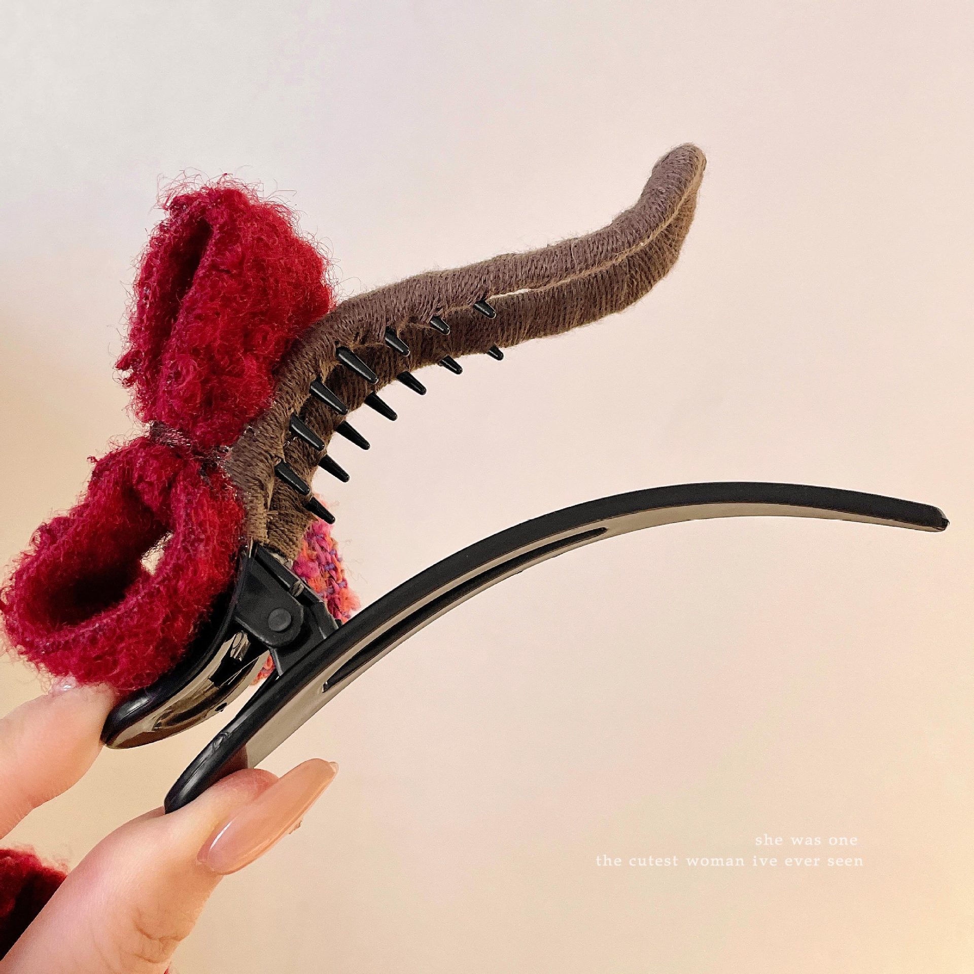 국경 간 폭발 작은 샤넬 스타일 활 봉제 오리 클립 달콤한 반쪽 넥타이 머리 헤어핀 상어 클립 헤드웨어