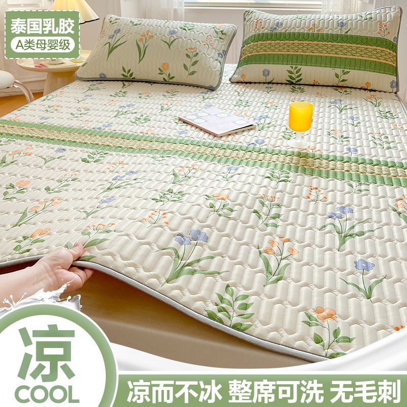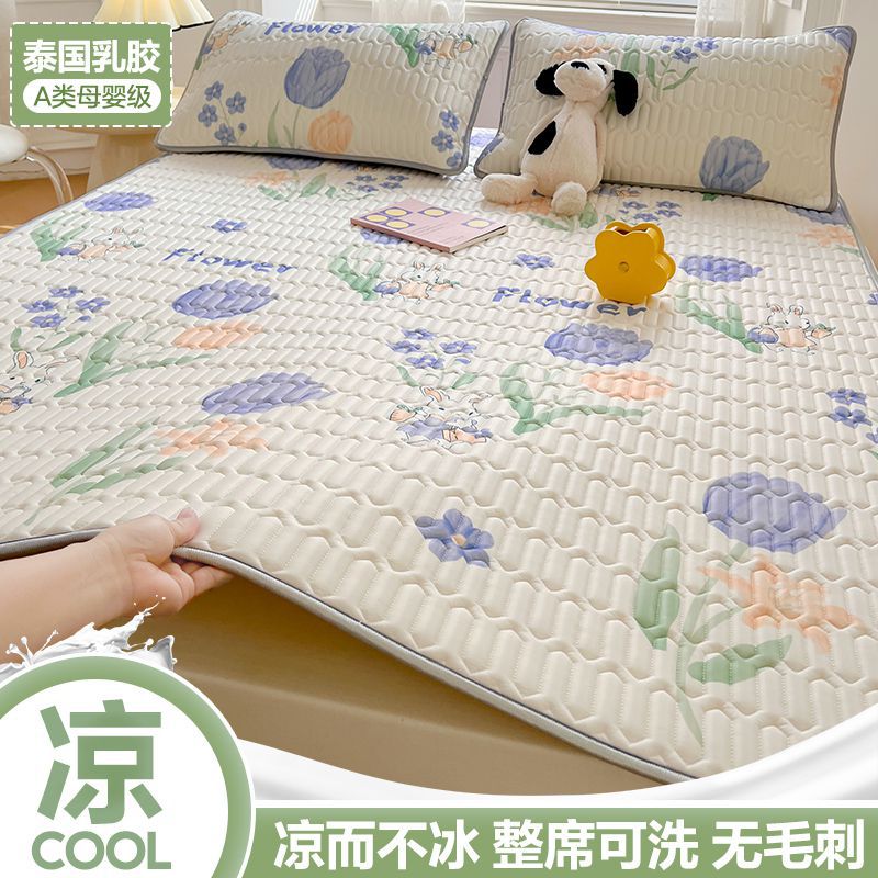 2025 새로운 클래스 A 쿨 실크 두꺼운 라텍스 인쇄 침대 매트 3 피스 세트 여름 퀼트 4 피스 세트