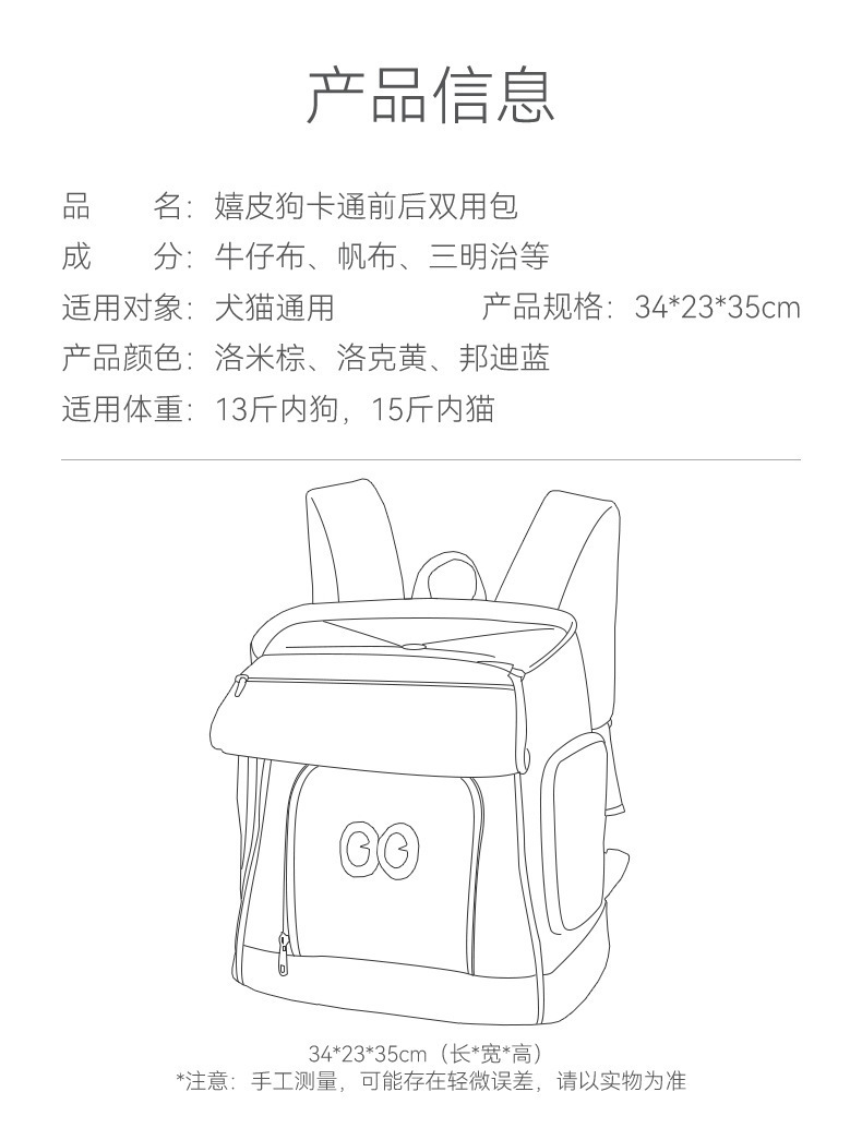 개 가방, 귀여운 만화 이중 용도 고양이 배낭, 외출 가방, 사계절 통기성 고양이 가방, 가슴 가방, 배낭, 애완 동물 가방