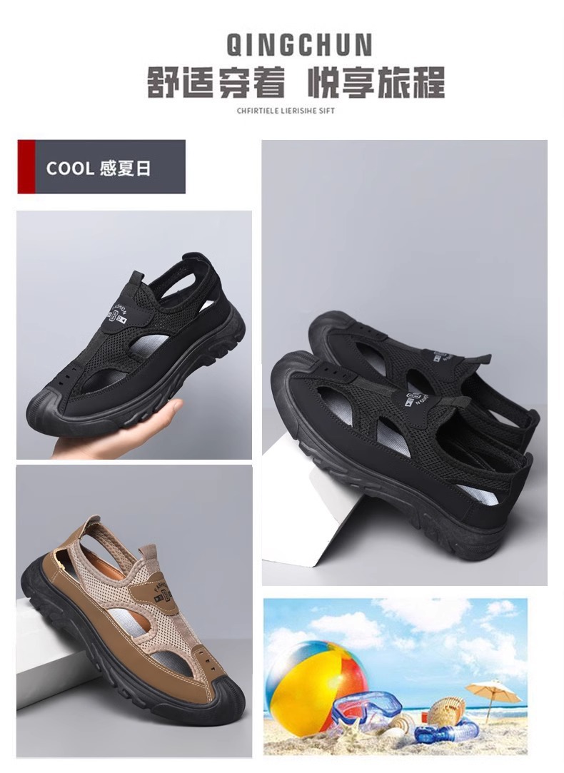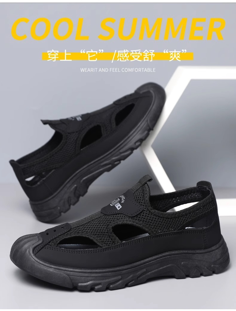 Baotou 샌들 남자 2025 년 여름 새로운 메쉬 패셔너블 비치 슈즈 메쉬 통기성 소프트 솔 홀 슈즈 남성 도매