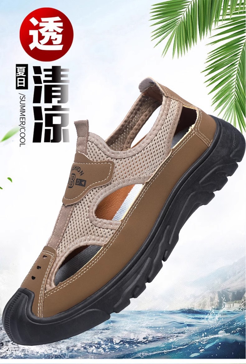 Baotou 샌들 남자 2025 년 여름 새로운 메쉬 패셔너블 비치 슈즈 메쉬 통기성 소프트 솔 홀 슈즈 남성 도매스토어 가기