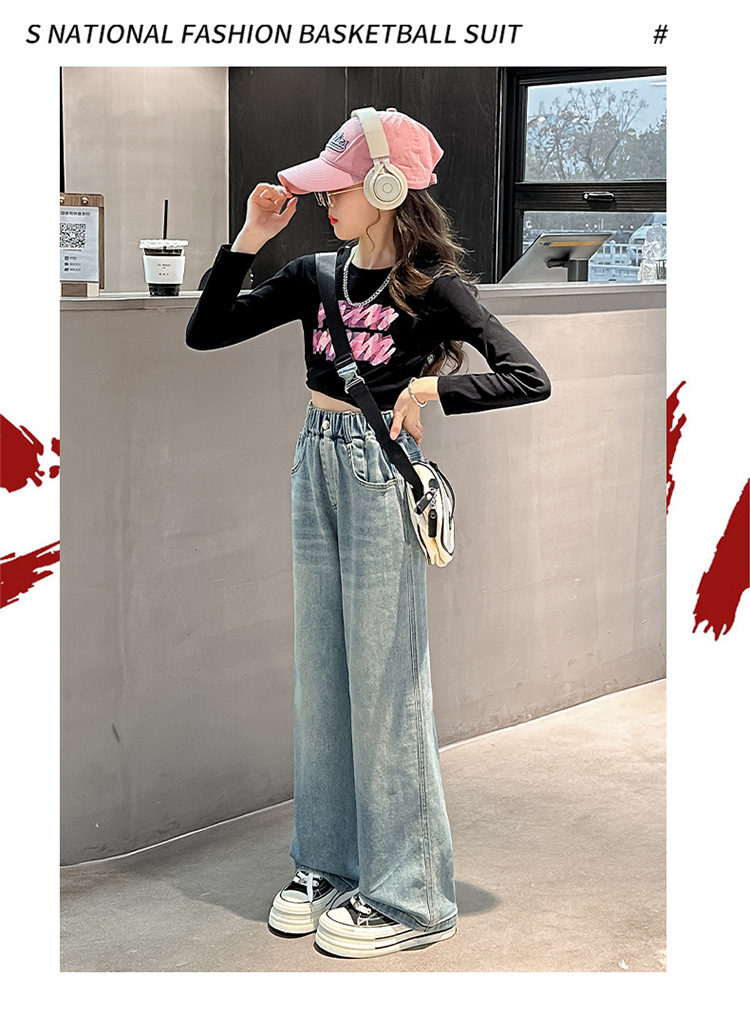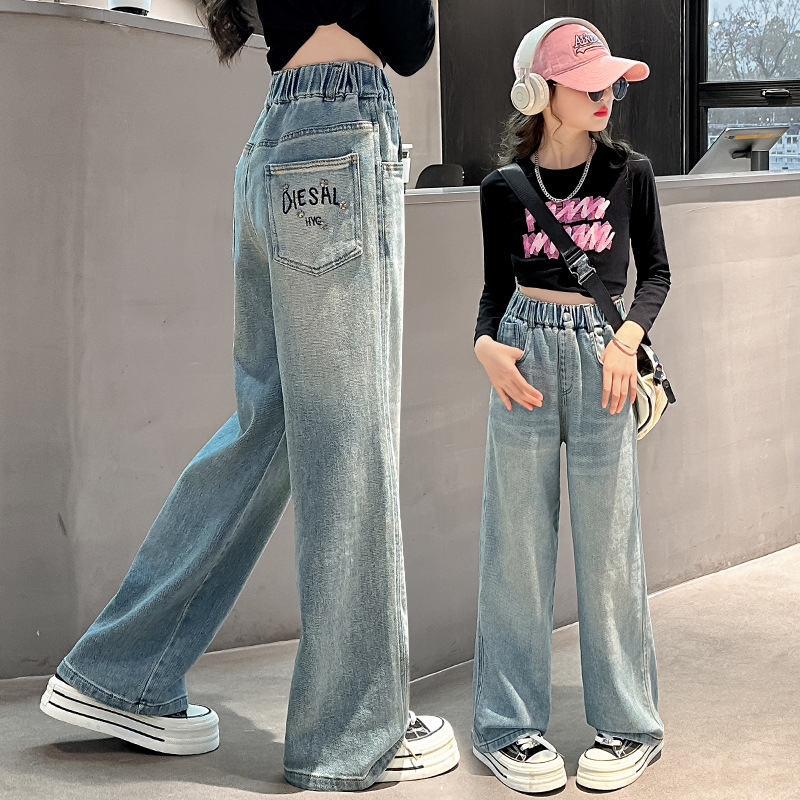 소녀 바지 어린이 봄과 가을 새로운 여자 어린이 의류 소녀 짠 바지 캐주얼 데님스토어 가기