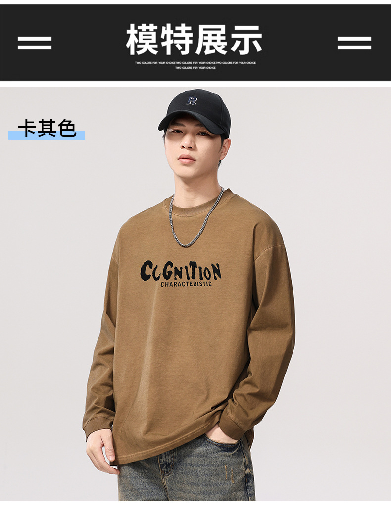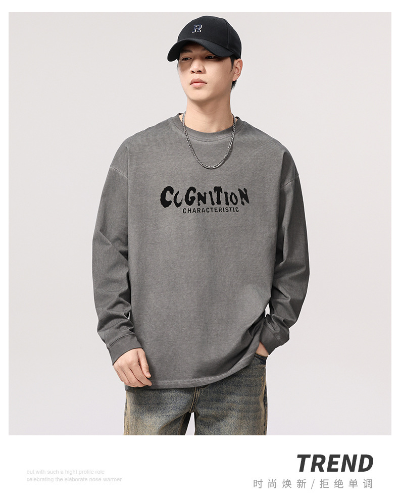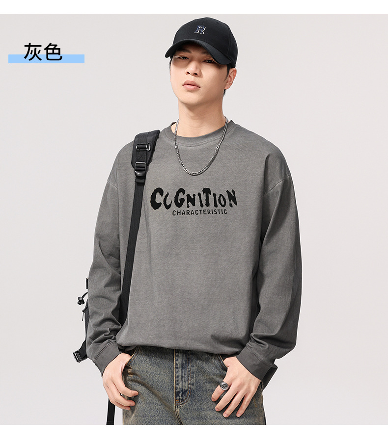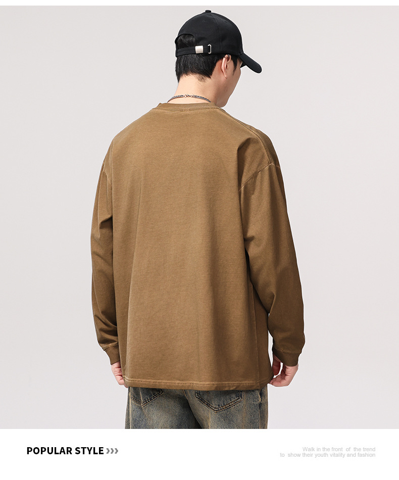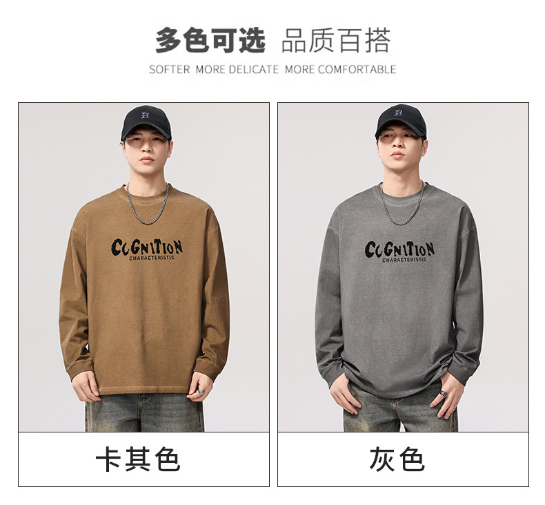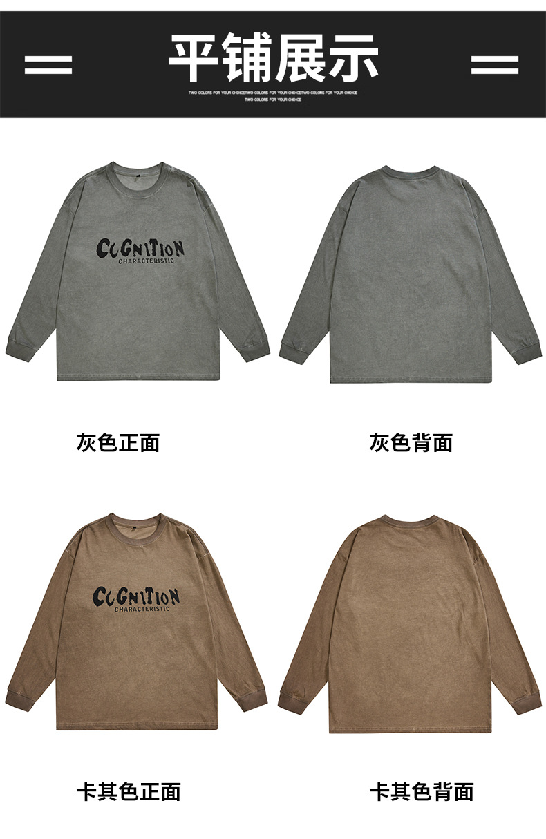 F1277 | 플러스 사이즈 남성 봄 새로운 프라이드 컬러 더티 워시 레트로 긴 소매 티셔츠 남성용 루즈 트렌드 올드 재킷스토어 가기