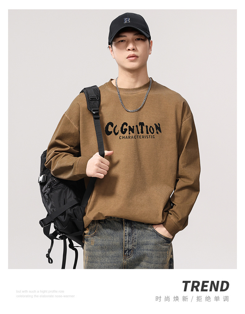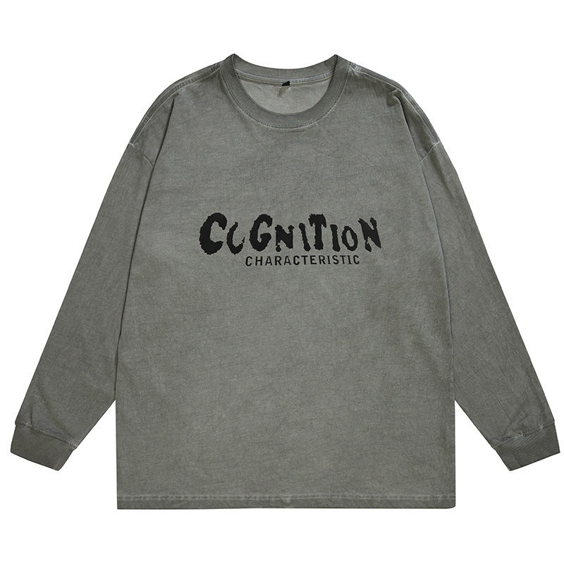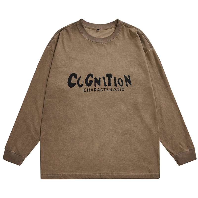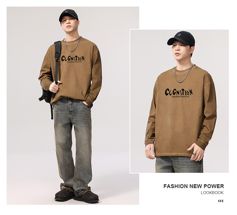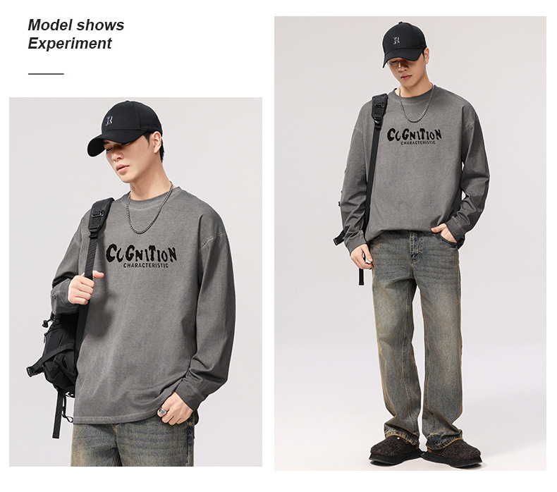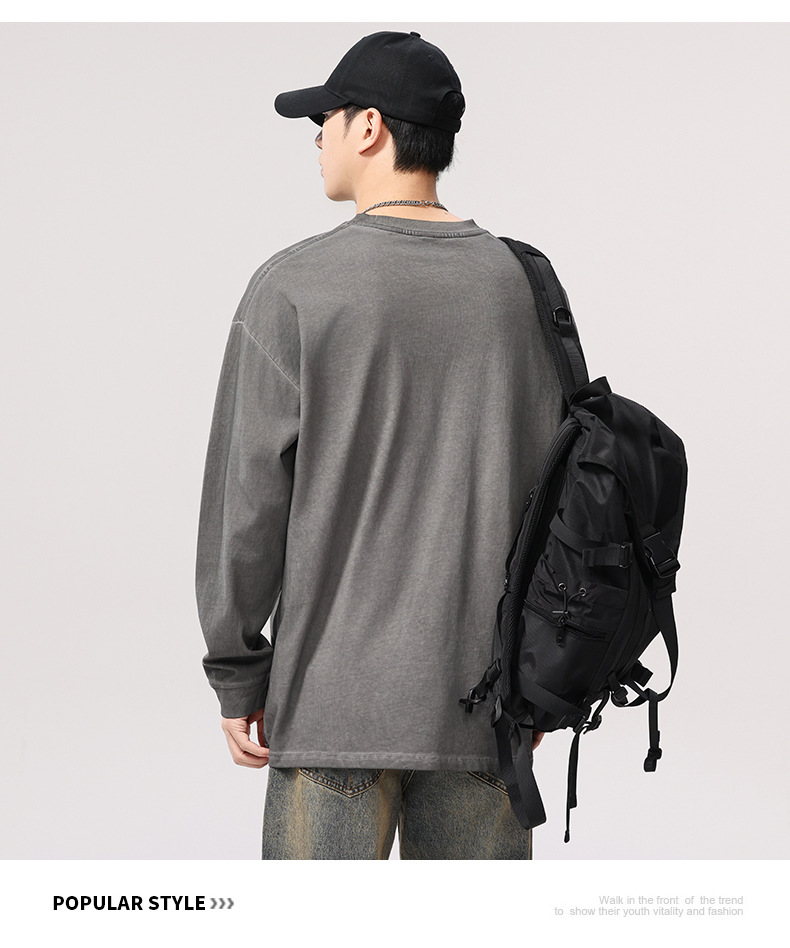 F1277 | 플러스 사이즈 남성 봄 새로운 프라이드 컬러 더티 워시 레트로 긴 소매 티셔츠 남성용 루즈 트렌드 올드 재킷스토어 가기