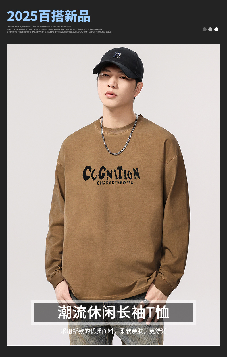 F1277 | 플러스 사이즈 남성 봄 새로운 프라이드 컬러 더티 워시 레트로 긴 소매 티셔츠 남성용 루즈 트렌드 올드 재킷