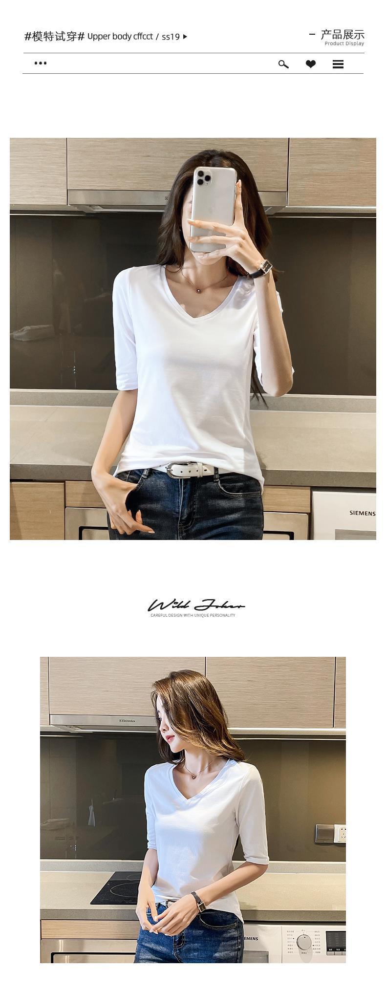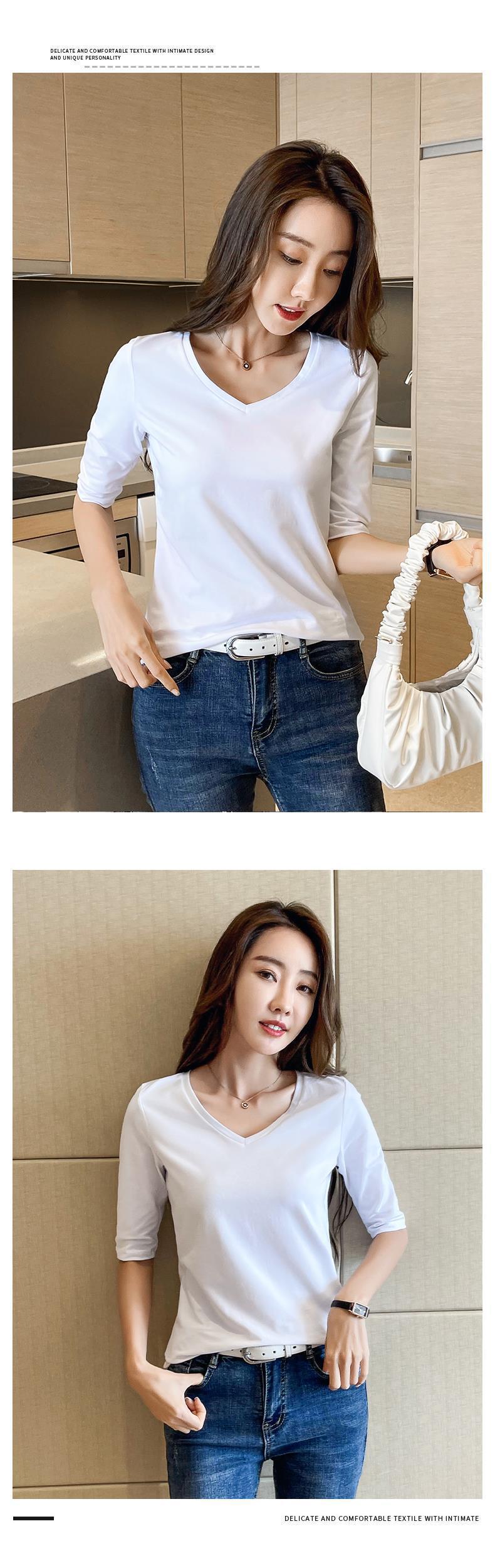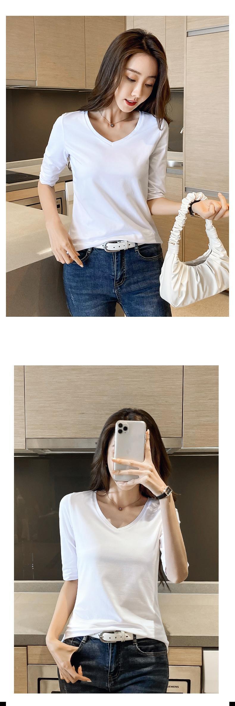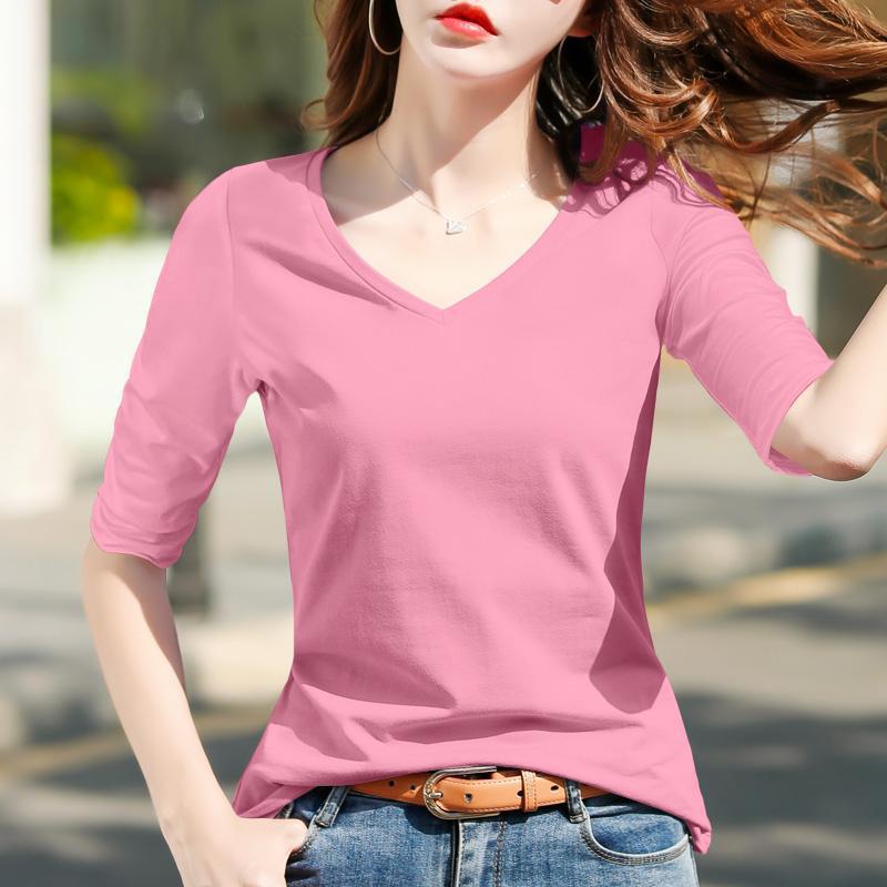 다크 그레이 미드 슬리브 티셔츠 여성용 내복 한국식 타이트한 하프 슬리브베이스 레이어 셔츠 스타일리즈드 올 매치 V 넥 트렌디 탑스토어 가기