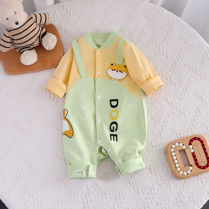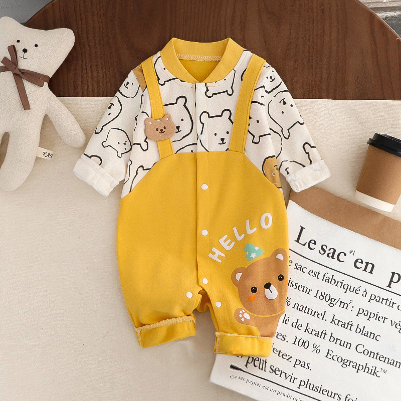 아기의 점프 수트 봄과 가을 가짜 투피스 멜빵 귀여운 아기의 길거리 면화 긴 소매 카약 등반 세트스토어 가기