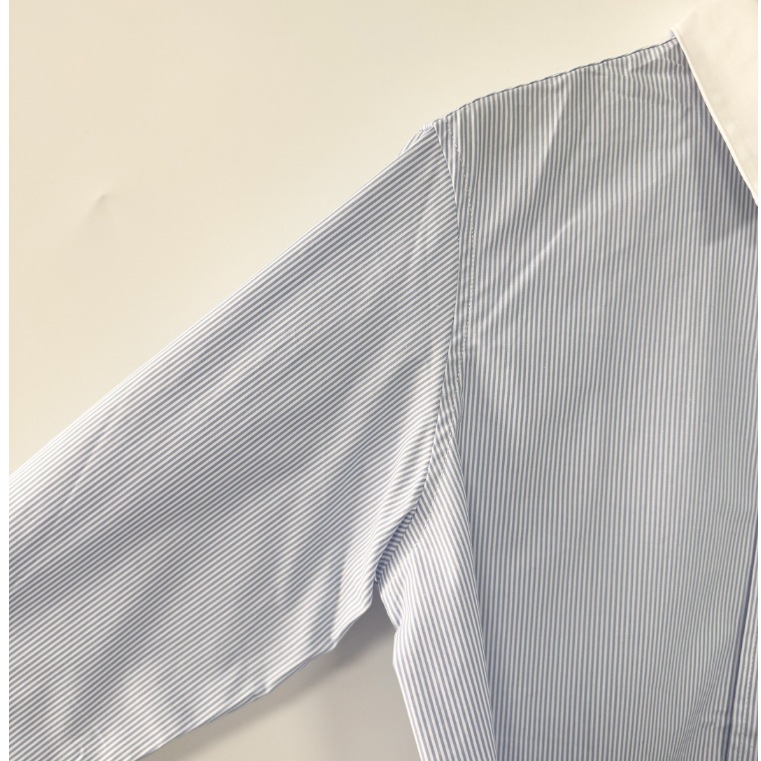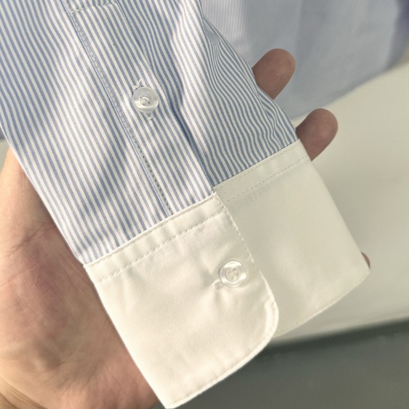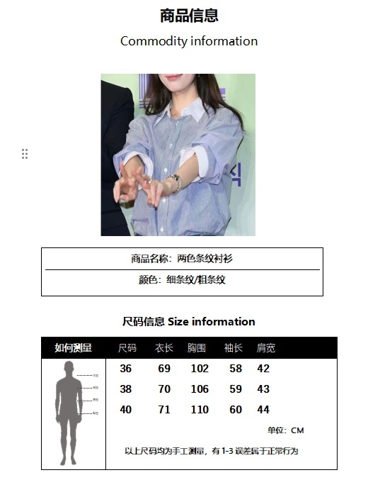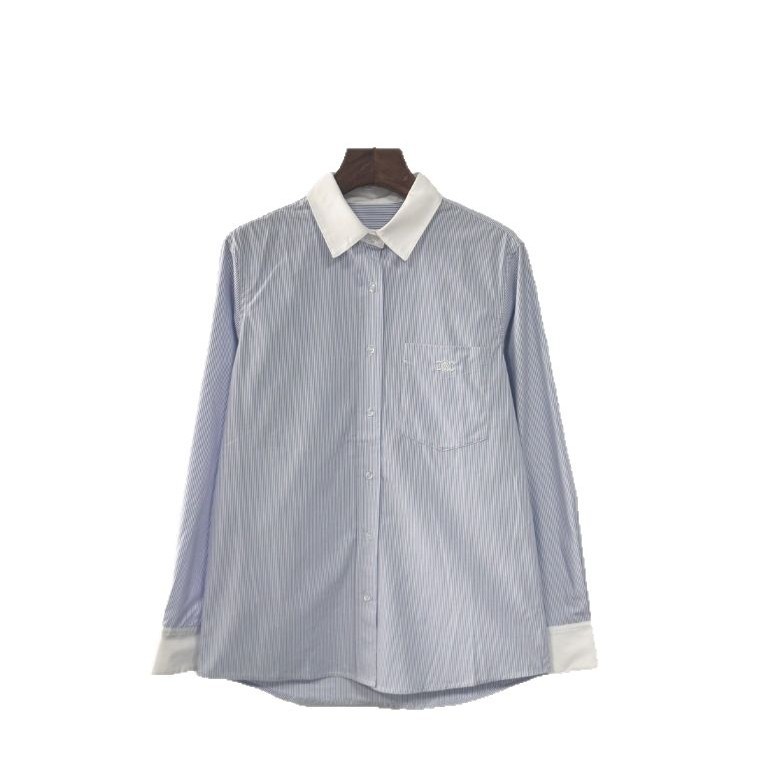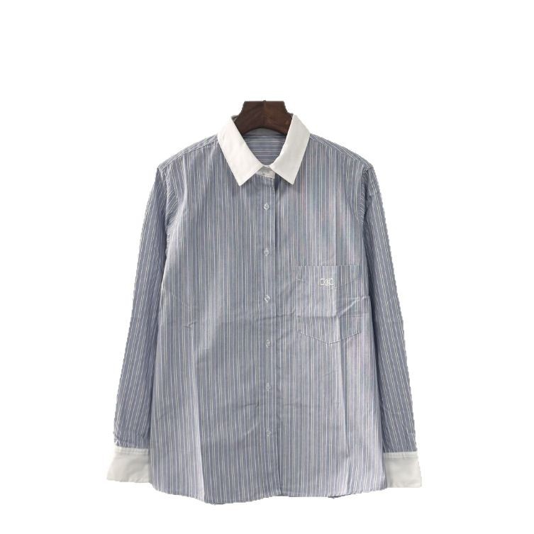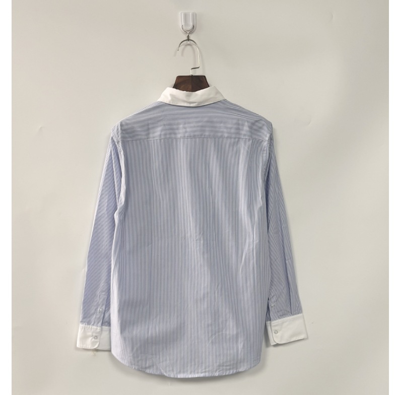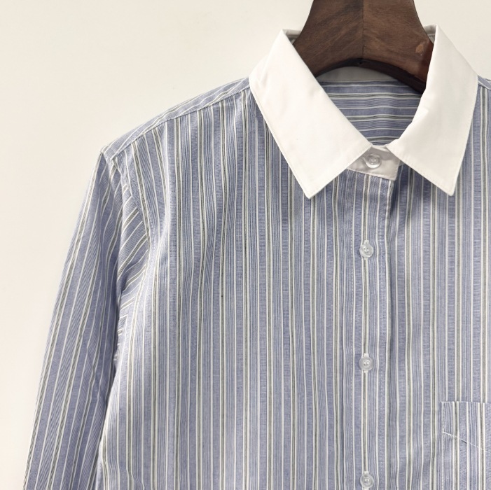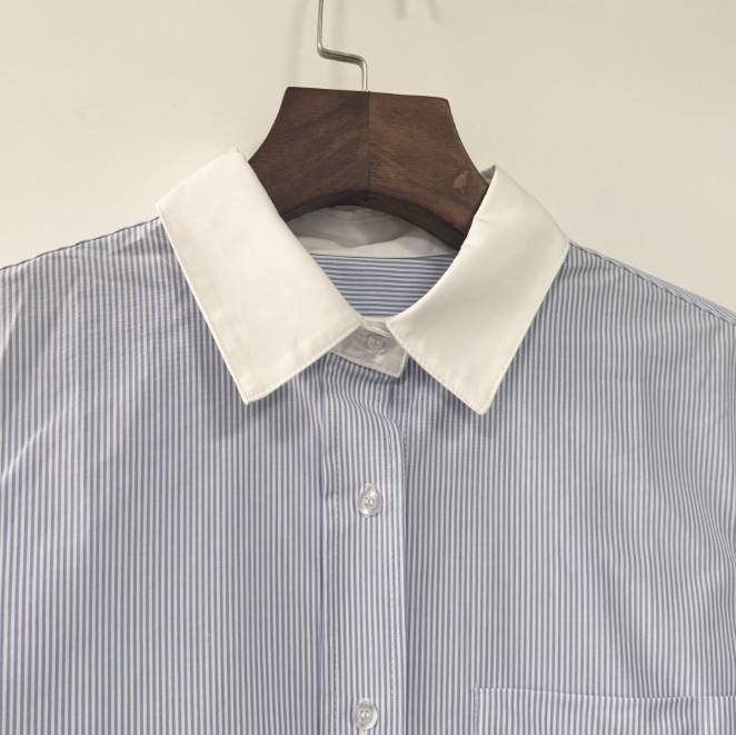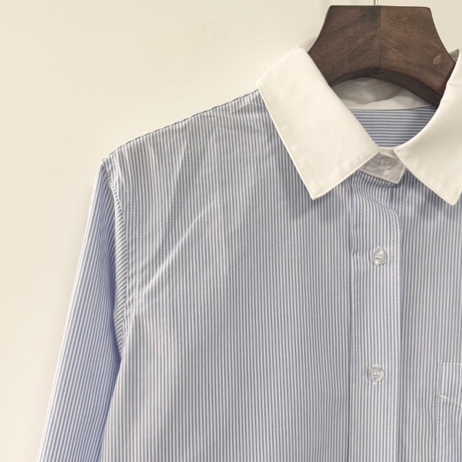 25 봄과 여름 새로운 스타 클래식 통근자 조커 슬림 대비 파란색과 흰색 셔츠 탑스토어 가기