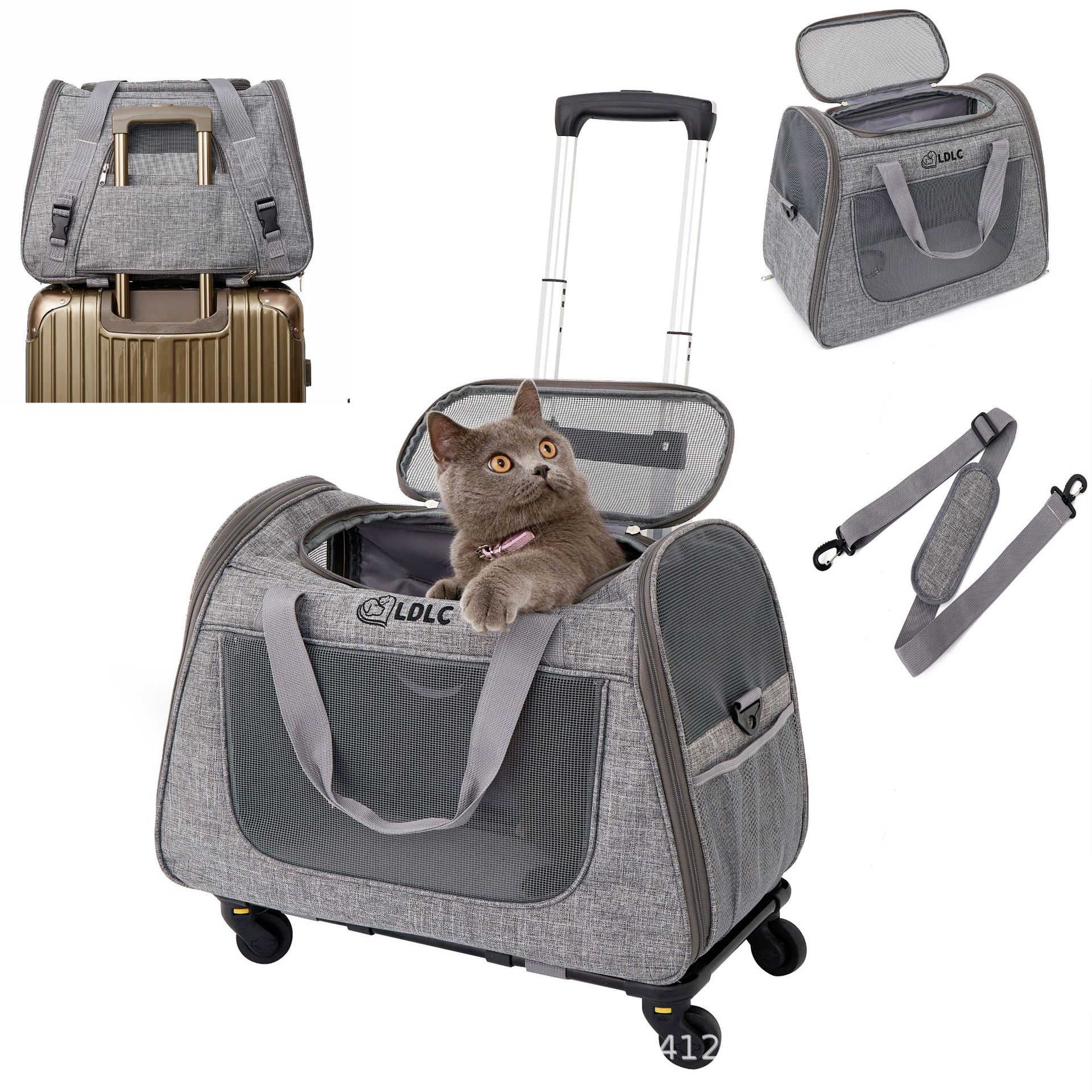 대형 애완 동물 가방 당기기 휴대용 통기성 고양이 가방 핸드백 고양이 테이크 아웃 싱글 숄더 개 트롤리 케이스