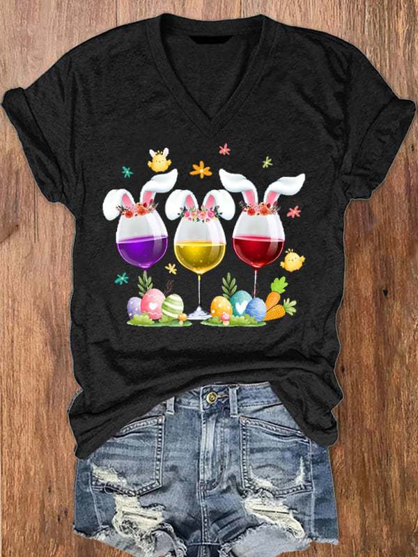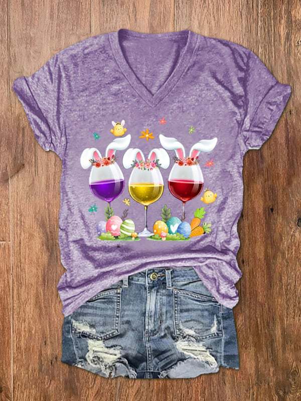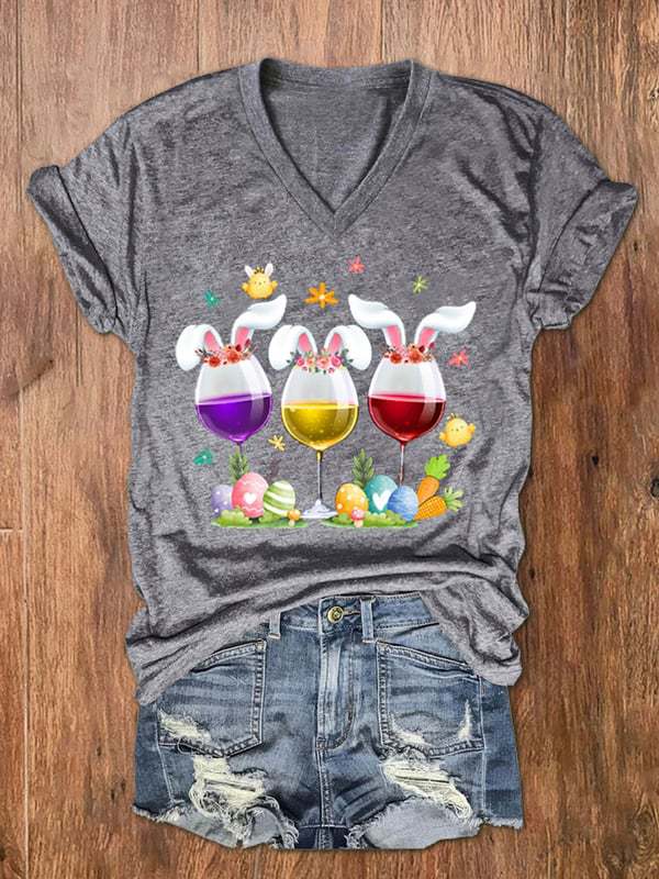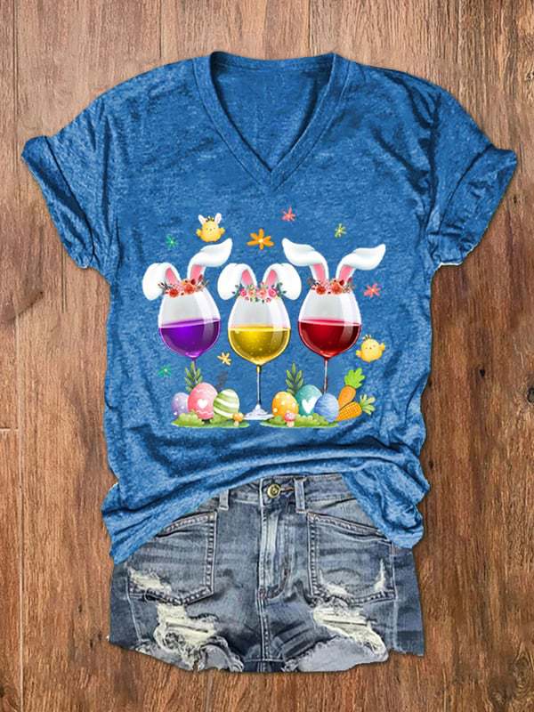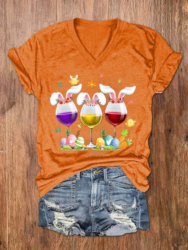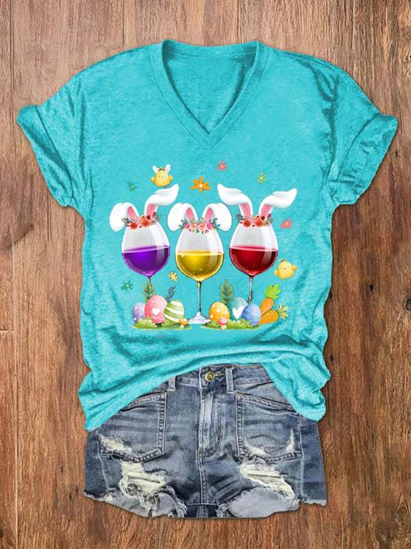 유럽과 미국 국경 아마존 독립 스테이션 3D 디지털 인쇄 부활절 여성의 V 넥 짧은 소매 티셔츠 공장 직접 판매