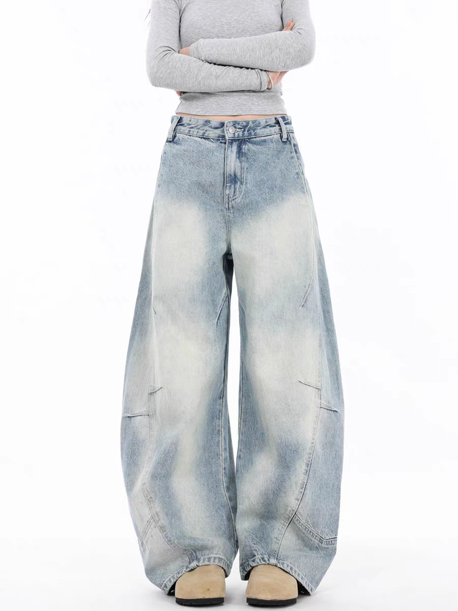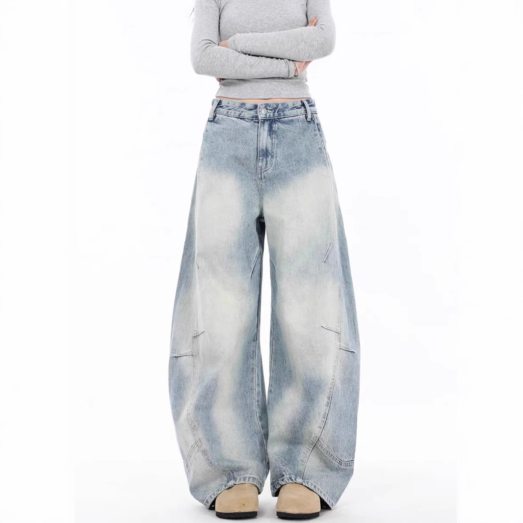 무료 소나타 아메리칸 레트로 올드 라이트 블루 시미타르 청바지 스티칭 디자인 바나나 낫 바지 여성