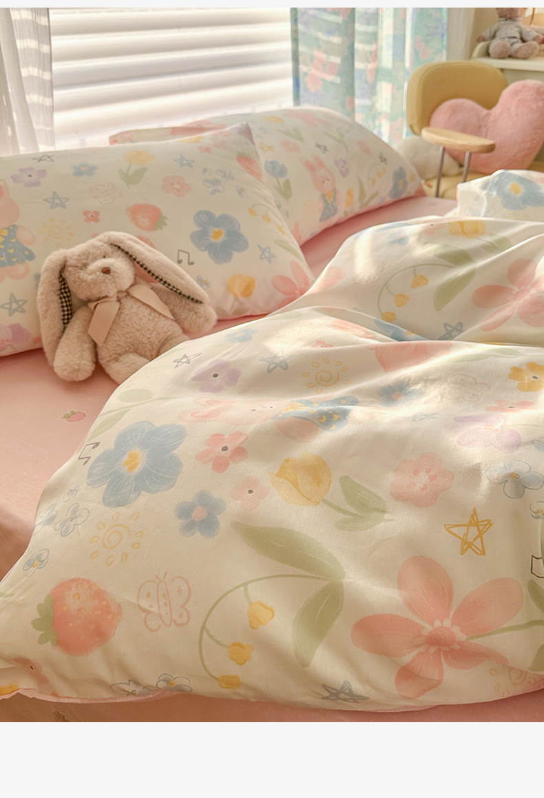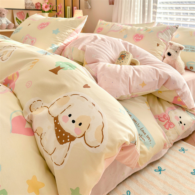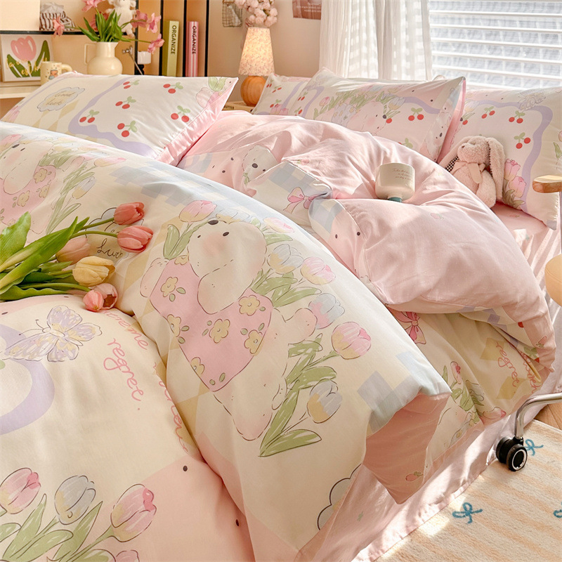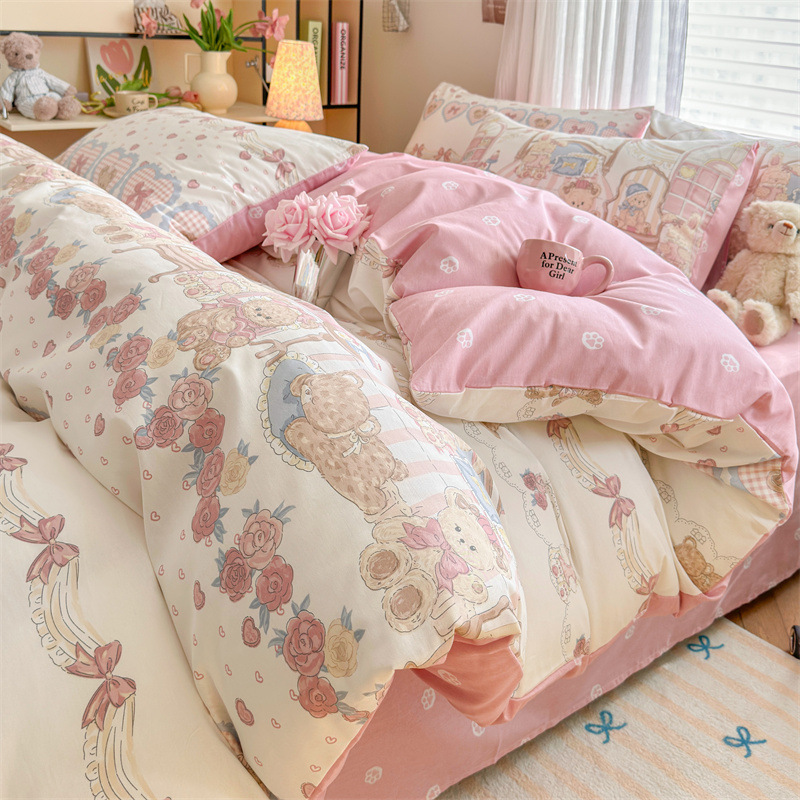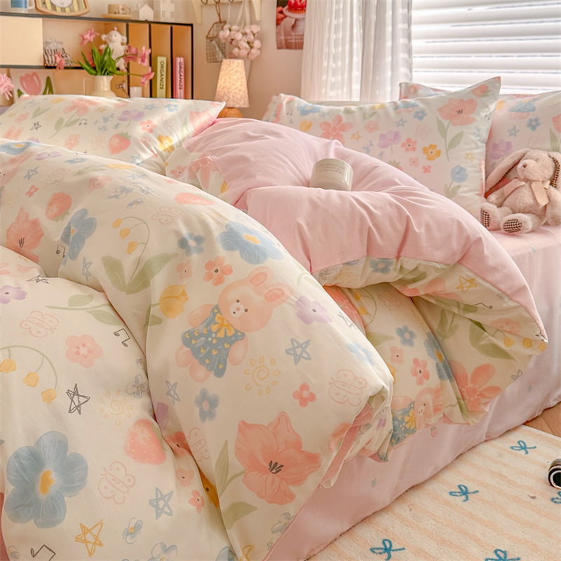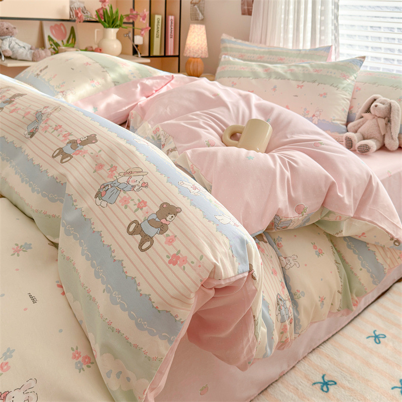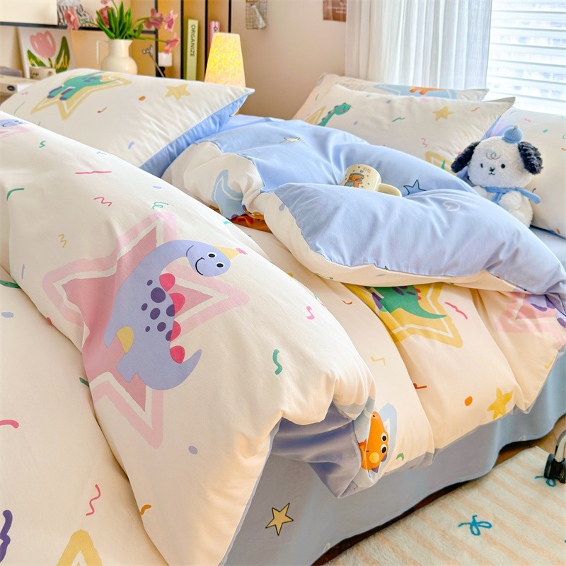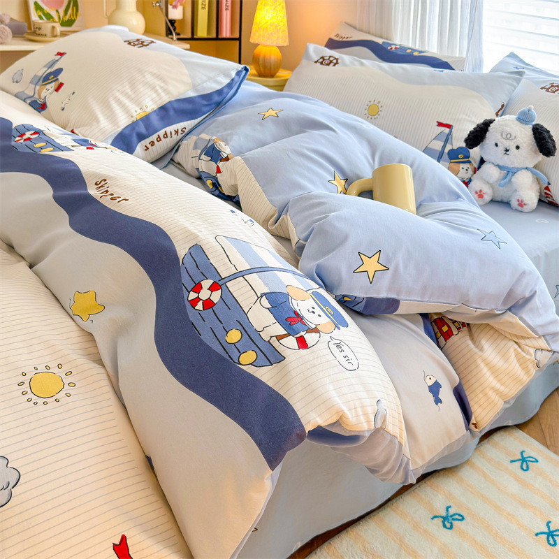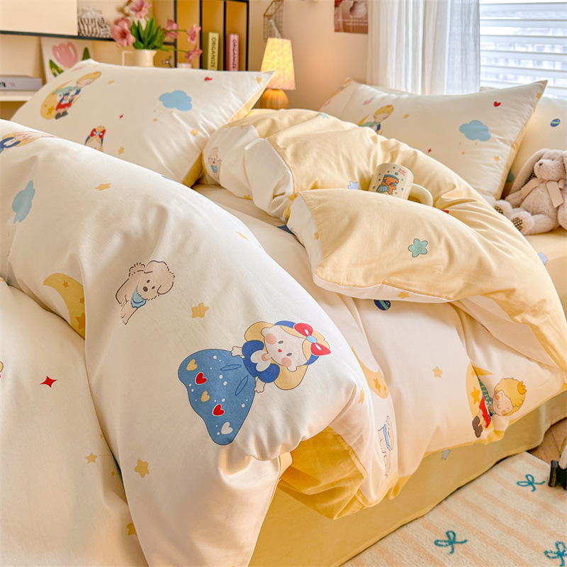 2025 새로운 코튼 침대 4 피스 세트 면 어린이 침구 학생 기숙사 싱글 퀼트 커버 침대 시트 3 피스 세트스토어 가기