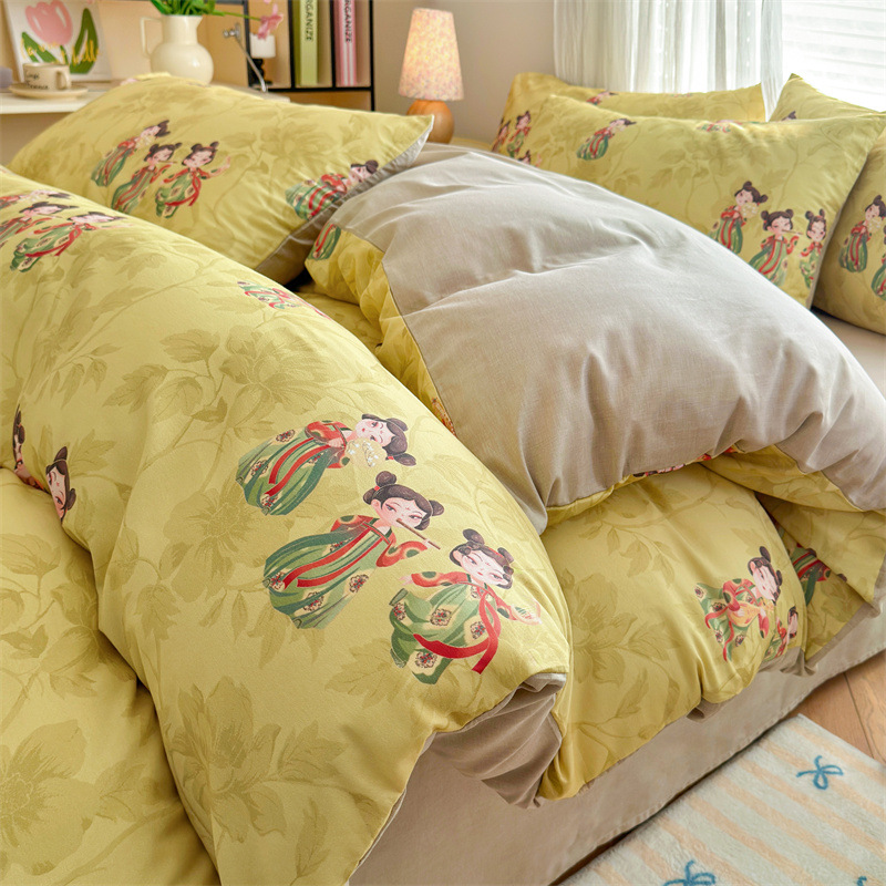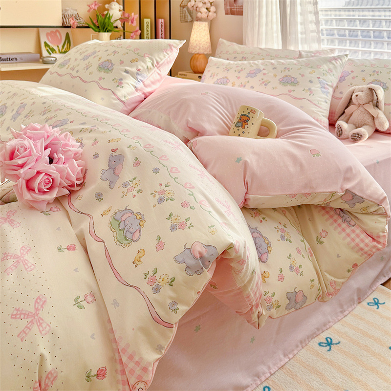 2025 새로운 코튼 침대 4 피스 세트 면 어린이 침구 학생 기숙사 싱글 퀼트 커버 침대 시트 3 피스 세트