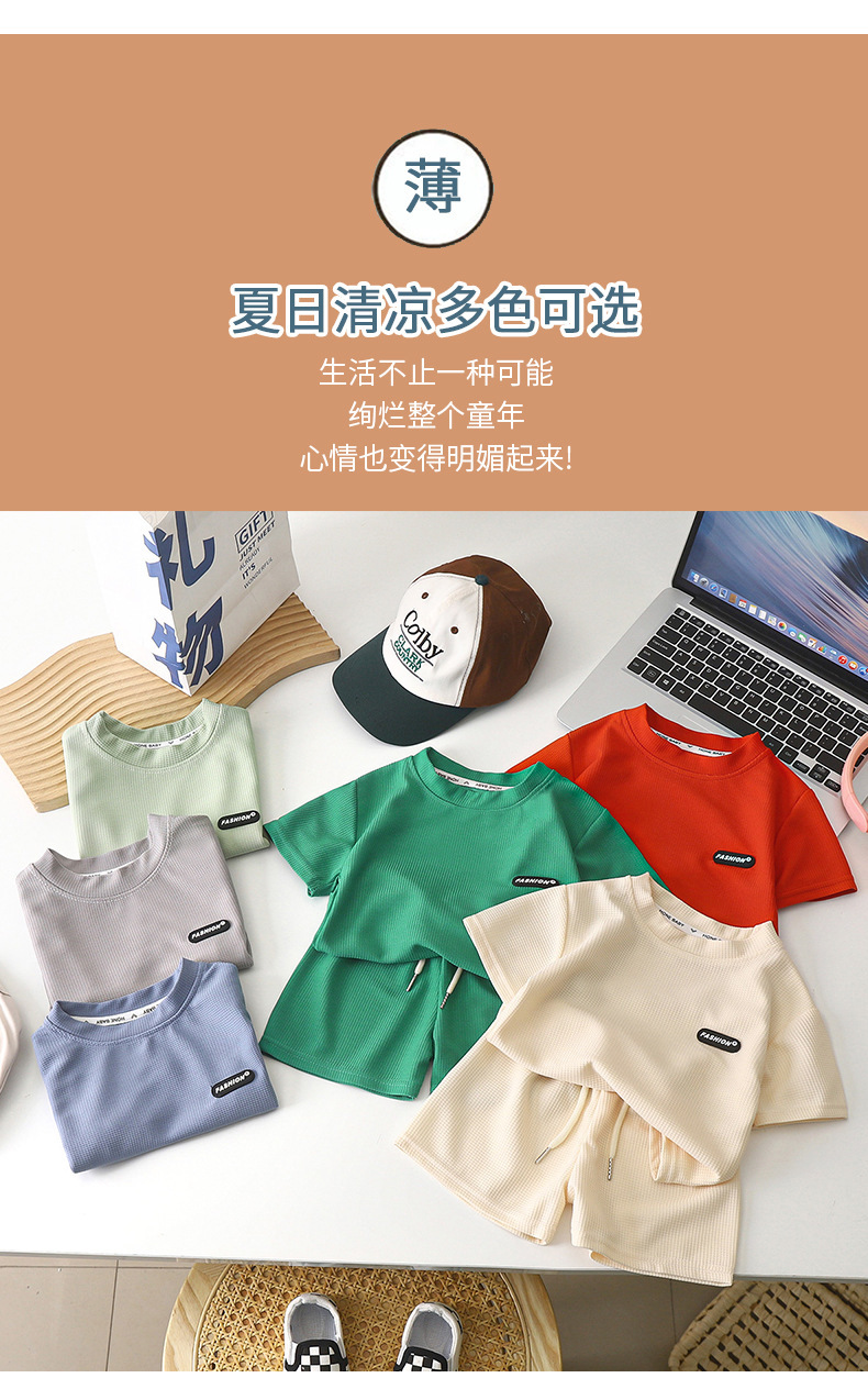 여름 아동복 어린이 캐주얼 세트 느슨한 옷 소년 소녀 짧은 소매 와플 아기 여름 아동복 도매