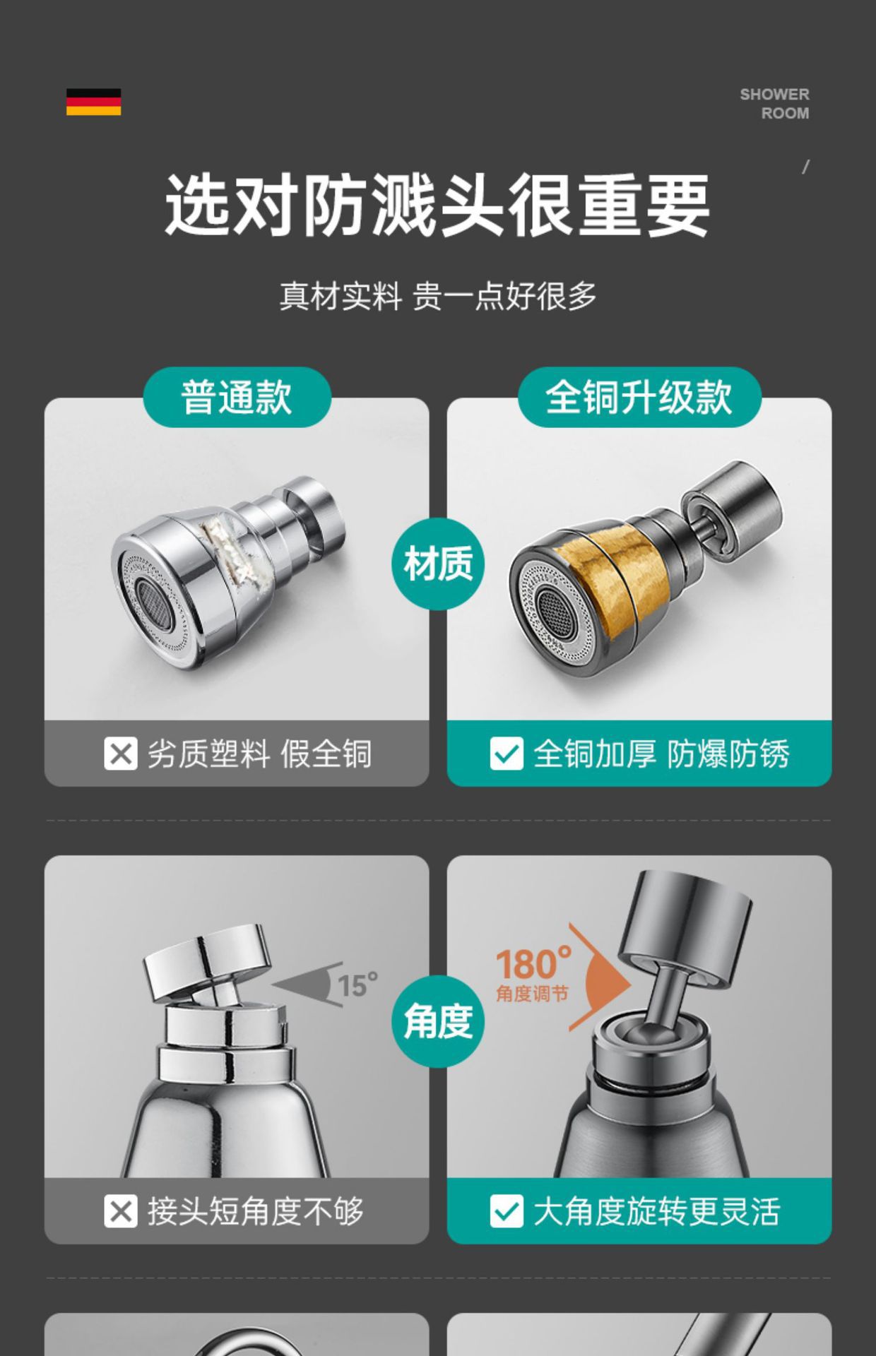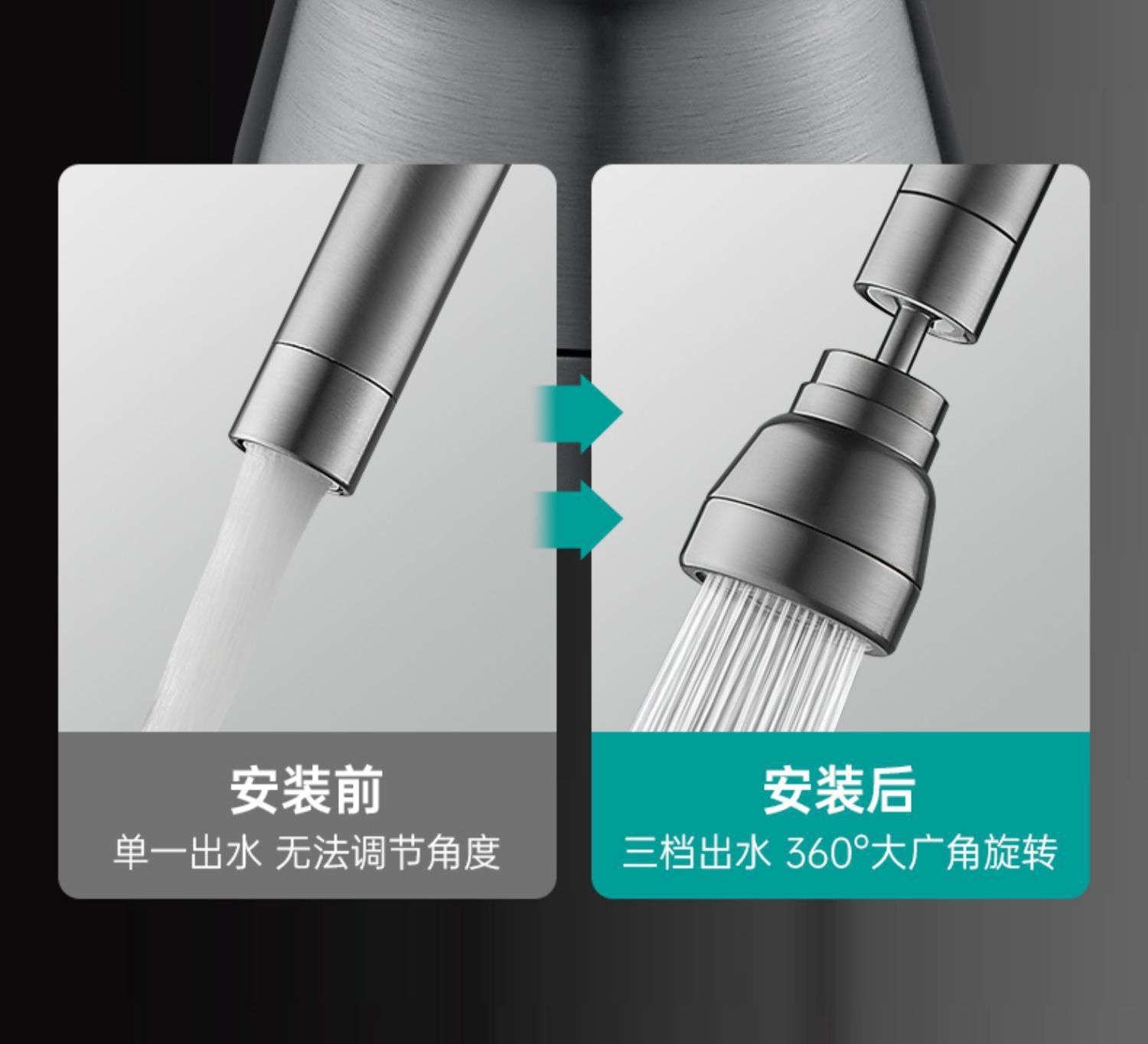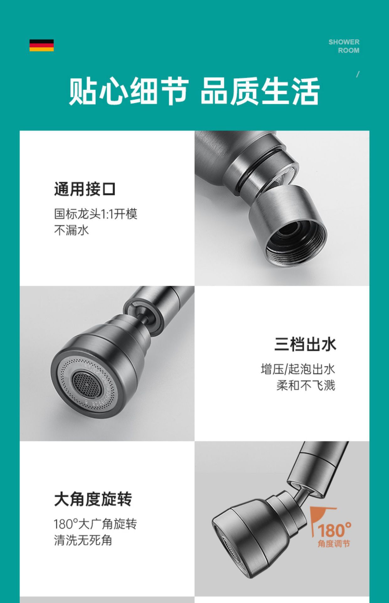 • 검정색 전체 구리(확장 버전) 3단 물 튀김 방지 수도꼭지