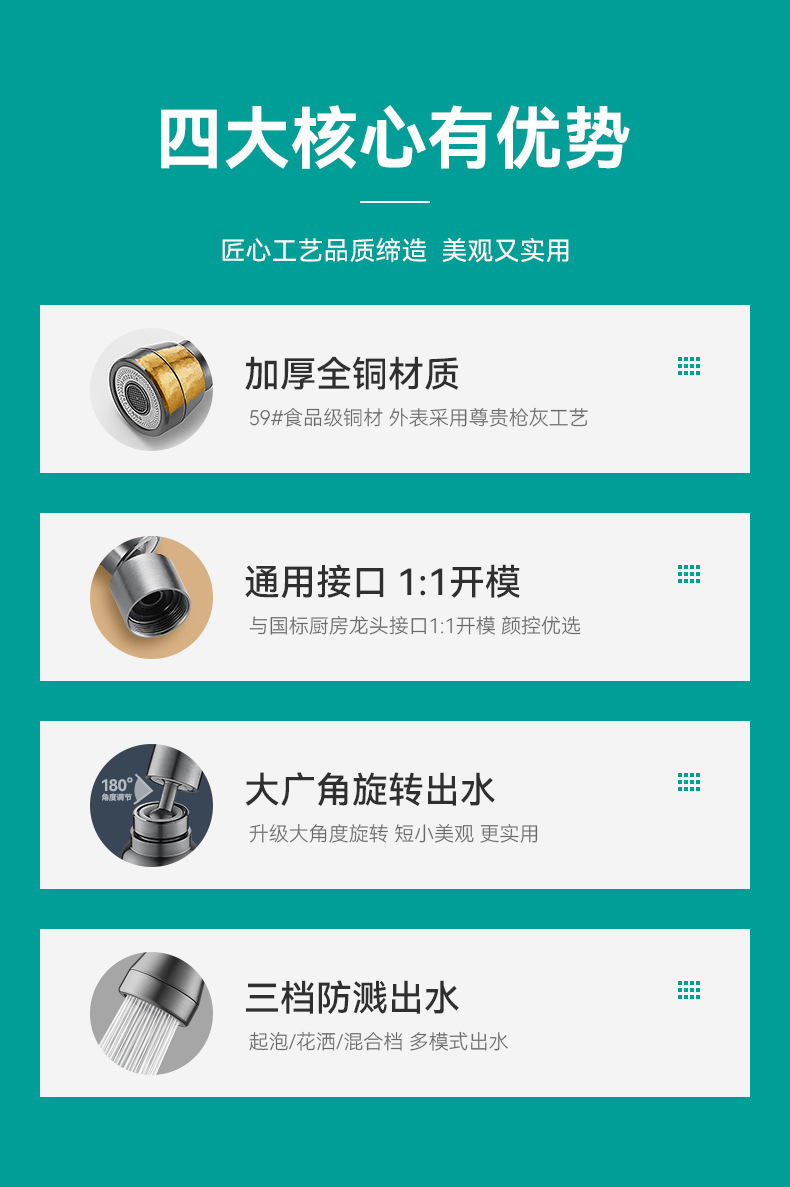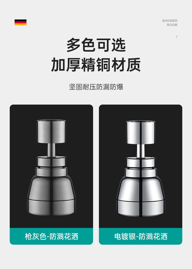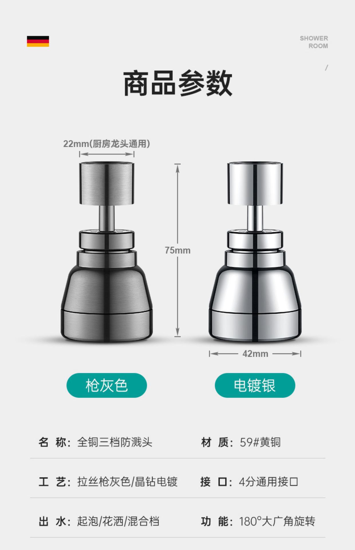 • 건 그레이 올 구리(확장 버전) 3단 물 튀김 방지 수도꼭지