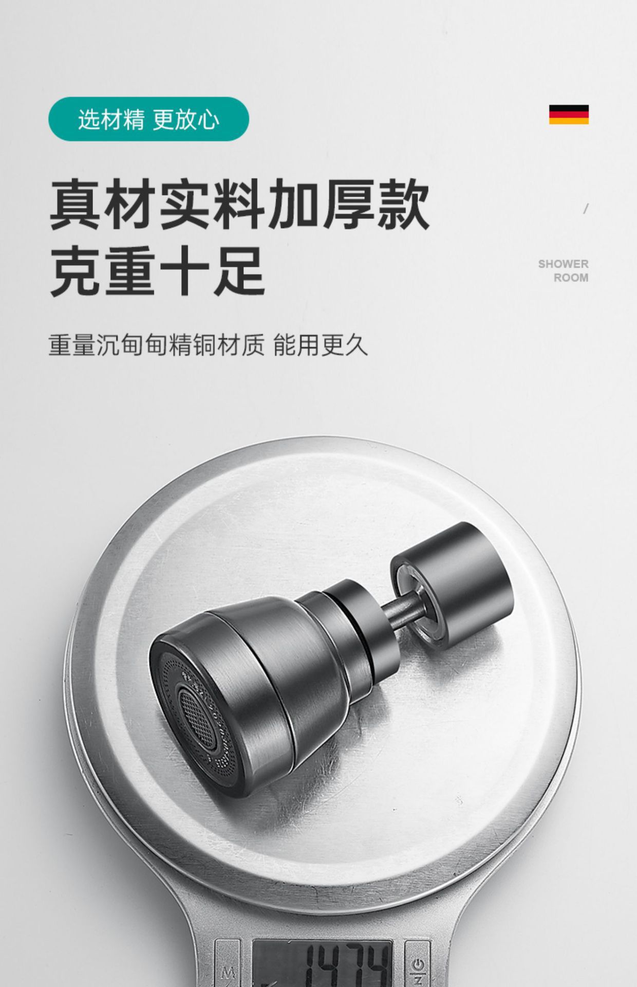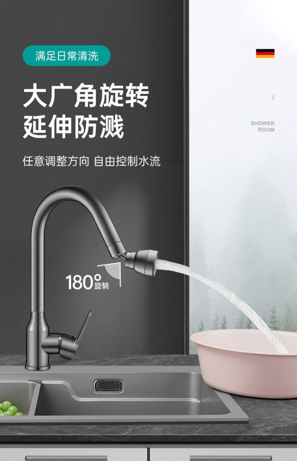 총 회색 모든 구리 주방 수도꼭지 스플래시 방지 물 유물 회전 가능한 확장 부스터 공동 스플래시 방지