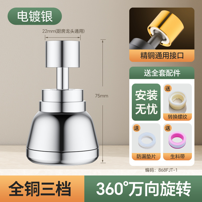 총 회색 모든 구리 주방 수도꼭지 스플래시 방지 물 유물 회전 가능한 확장 부스터 공동 스플래시 방지스토어 가기